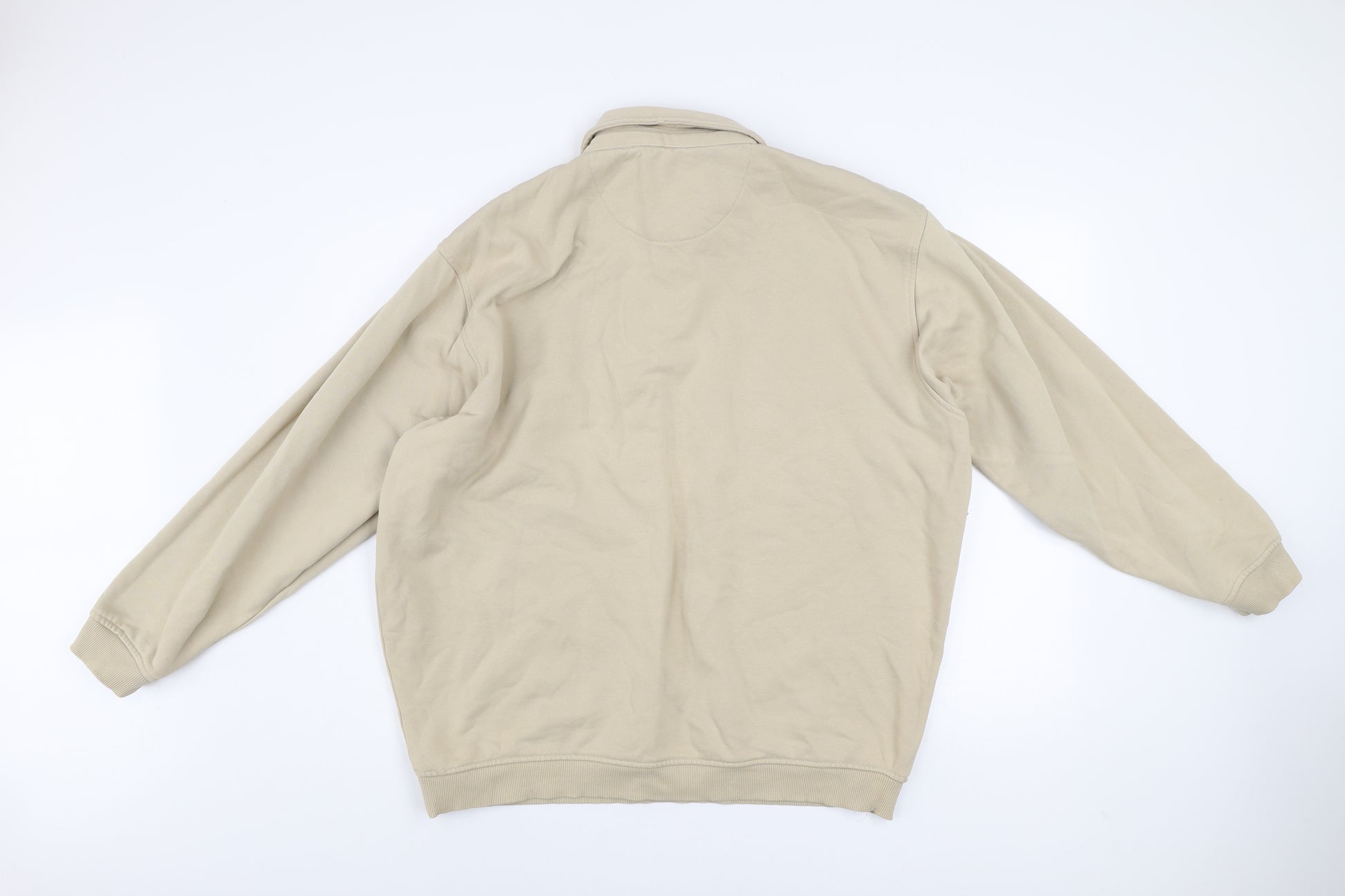 Refresh your casual wardrobe with this classic men's beige sweatshirt from EWM. Designed in a comfortable XL size, this versatile piece blends timeless style with everyday practicality. Made from a soft 80% cotton and 20% polyester fabric mix, it offers comfort, breathability, and easy care. The collared Henley neckline with button fastening adds a refined touch suitable for layering over a tee or wearing on its own. Featuring long sleeves with ribbed cuffs and hem, it ensures a snug, relaxed fit perfect for cooler days. The subtle embroidered logo across the chest and navy stripe detail bring understated character and appeal. This sweatshirt suits the modern man who appreciates effortless style whether for a casual outing, a walk, or lounging at home. A piece that pairs easily with jeans or chinos, it’s ideal for autumn, spring, and winter wear. Despite light marks on the sleeve, the sweatshirt remains in good used condition and ready to wear. An excellent affordable wardrobe addition that combines quality, comfort, and timeless design. Machine washable for everyday convenience.