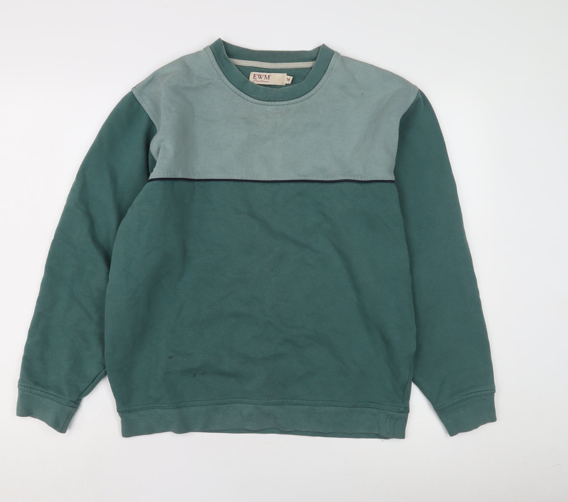 Elevate your casual wardrobe with this EWM Men's Green Pullover Sweatshirt in size M. Designed for comfort and style, this sweatshirt is crafted from soft jersey fabric, making it a suitable choice for the cooler seasons of autumn and winter. Its relaxed fit and crew neck design ensure a classic look that pairs effortlessly with jeans or casual trousers. With a simple pullover style, it offers ease of wear while maintaining a clean appearance free of distracting patterns. Its understated design makes it a versatile piece for any man's wardrobe. Perfect for everyday wear, this sweatshirt is machine washable, ensuring easy care and maintenance. Despite minor stains, its overall condition remains good, offering a stylish option at an affordable price. Add a touch of timeless charm to your apparel with this reliable and fashionable choice from EWM.