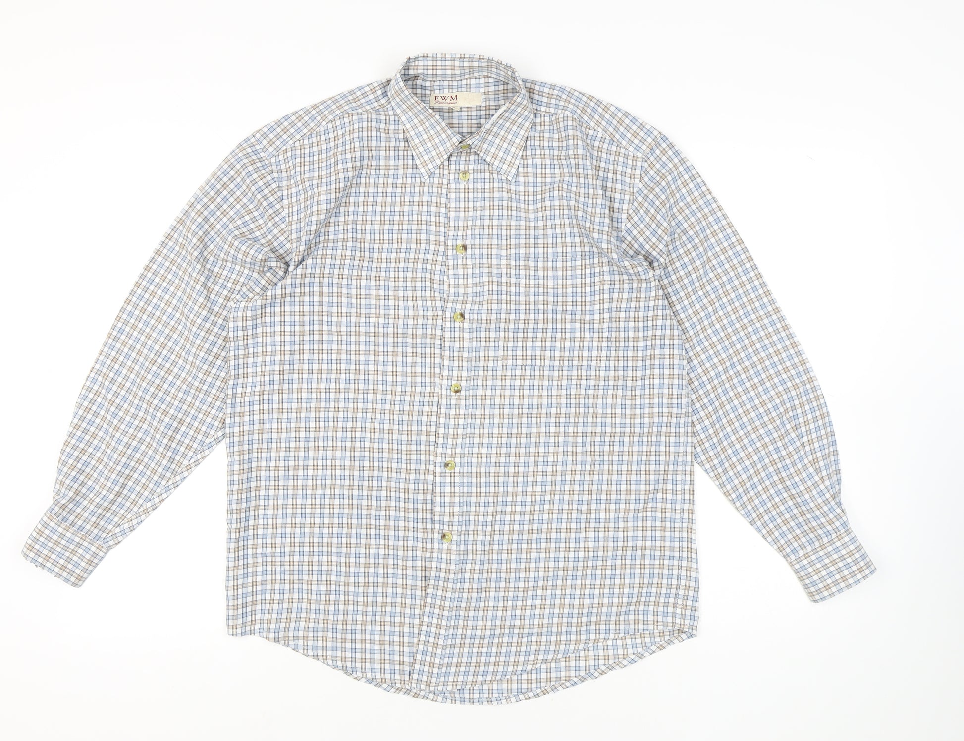 Elevate your casual wardrobe with this stylish EWM Men's Shirt in a versatile multicoloured plaid pattern, perfect for a variety of occasions. Crafted from a comfortable blend of 65% polyester and 35% cotton, this shirt ensures breathability and durability. The button-up style, complemented by a classic collared neckline, adds a touch of sophistication, making it ideal for casual outings or relaxed weekends. The long sleeves provide a timeless look that can transition easily between seasons. Though it shows light wear, it is in excellent condition, ready to be a new staple in your collection. Designed specifically for men, this shirt embodies casual elegance. The size 'S' ensures a great fit for small frames, while the plaid pattern brings a classic yet modern aesthetic, perfect for layering or wearing alone. With its button accents adding a subtle flair, this shirt offers practical style without compromise. Whether you're heading out for a casual lunch or relaxing at home, this EWM shirt is an excellent choice for those who appreciate quality and style.