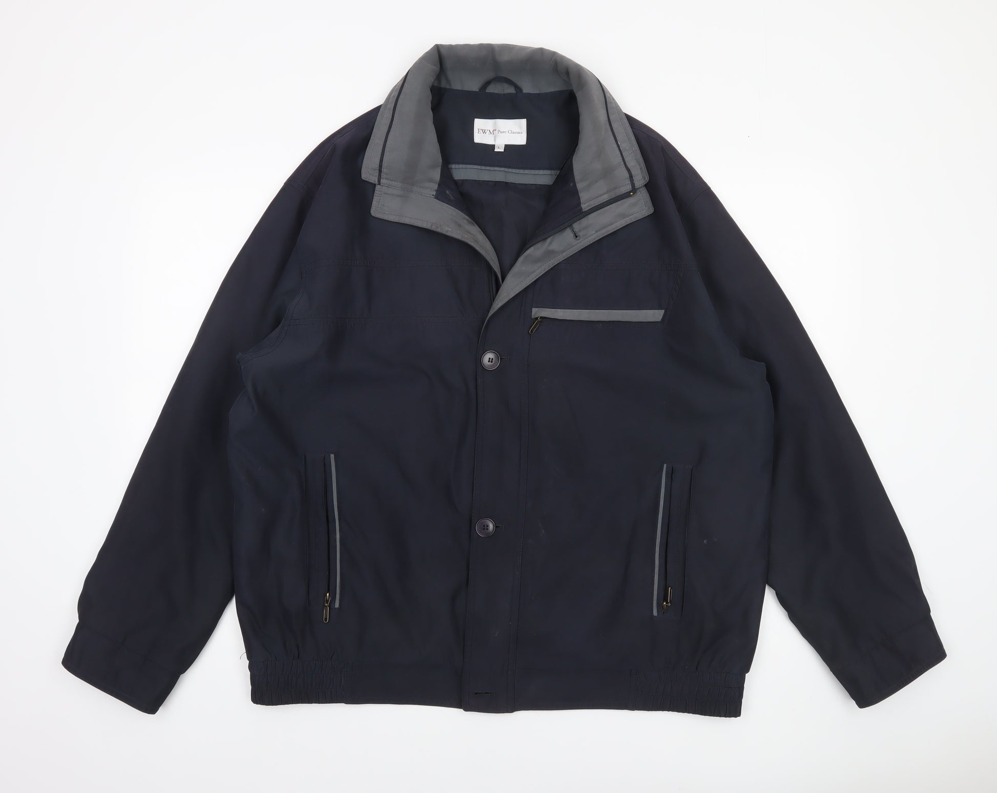 Men's Blue L Basic Jacket Polyester Nylon Lined Zip Button Casual