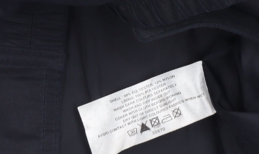 This EWM Pure Classics men's blue jacket offers a timeless and versatile addition to any wardrobe. Designed in a comfortable regular fit, this jacket is crafted from a durable outer shell made from 88% polyester and 12% nylon, creating a lightweight and breathable garment that feels comfortable in varying weather conditions. The interior is fully lined in soft polyester for a smooth feel that ensures comfort throughout the day. It features a combination of a zip and button front closure for added convenience and wind resistance, enhanced further by the elasticated waistband for a secure fit. The design includes practical zipped side pockets and a chest zip pocket, perfect for keeping essentials safe while offering a modern look. The stand-up collar adds a touch of structure and additional protection against cool breezes, ideal for chilly mornings or mild autumn evenings. Styled in classic navy blue, this basic jacket suits a wide range of casual occasions, from weekend outings to relaxed daily wear. It’s easy to care for, being machine washable and made to last with high-quality stitching and sturdy construction. The absence of bold patterns enhances the timeless appeal, making the jacket perfect for layering over shirts, knitwear, or lightweight tops. Whether you’re dressing for a walk outdoors or heading into town, this EWM Pure Classics jacket blends comfort, function, and understated style effortlessly. A practical choice for spring or autumn, this versatile piece provides dependable coverage while maintaining a smart, casual appearance. Excellent for pairing with jeans or chinos, it balances modern comfort and traditional craftsmanship. Though showing slight signs of light wear, the item remains in very good condition with a clean overall look, ready to complement any gentleman’s outerwear collection with classic charm.