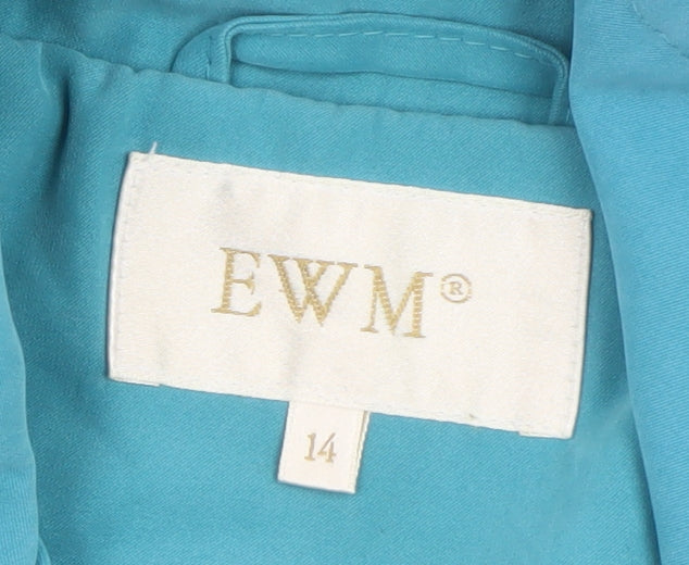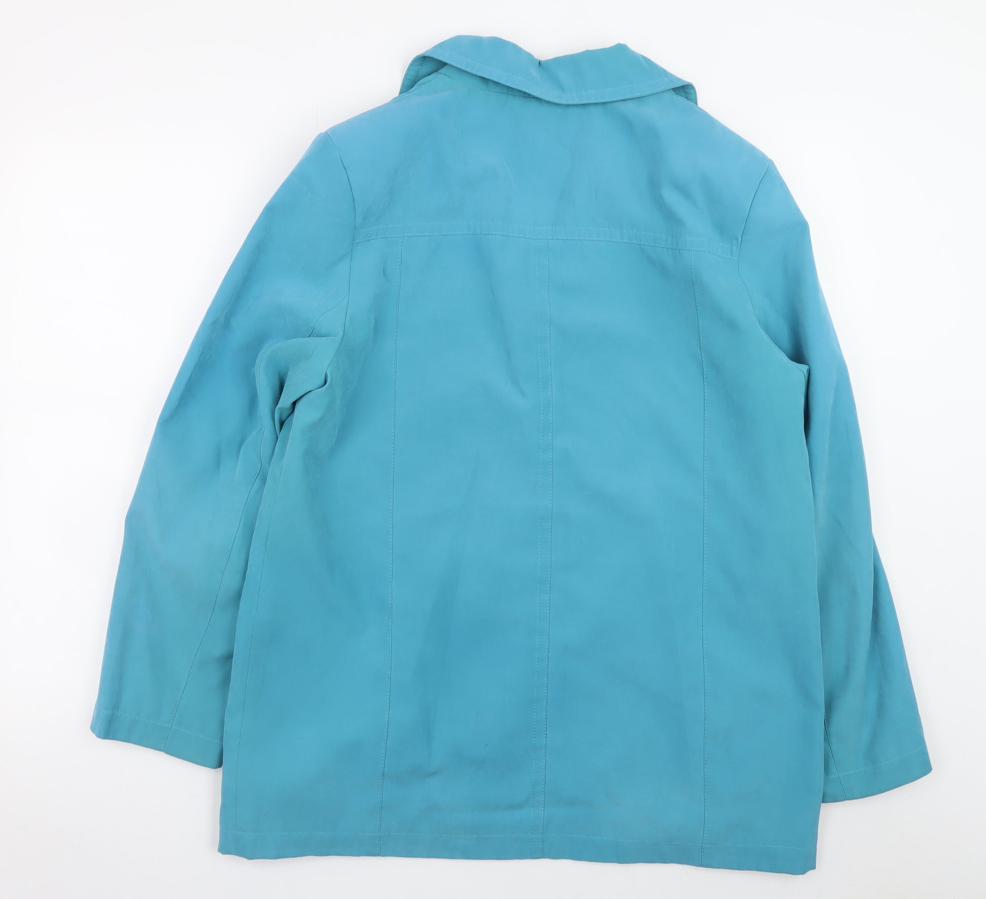This EWM women’s size 14 mid-length jacket is a stylish and practical piece ideal for layering during the spring and autumn months. Crafted from a durable blend of polyester and polyamide, the jacket offers lightweight comfort and resistance to everyday wear. The crisp blue colour gives a fresh, flattering look that pairs easily with casual or semi-formal outfits. Designed with a classic collared neckline and a traditional button fastening through the front, this jacket exudes simple elegance. The two front flap pockets with button detailing add functionality and charm while offering space to keep small essentials close at hand. Fully lined in soft polyester, it ensures smooth comfort and a neat silhouette when worn over other garments. The relaxed, regular fit allows freedom of movement, making it perfect for everyday use, weekend strolls, or travel. Subtle stitching gives it a polished finish, while the mid-length cut provides a bit of extra coverage on cooler days. This versatile jacket is machine washable, making upkeep effortless. With light wear but no visible marks or damage, it remains in excellent condition overall. Perfect for those who appreciate well-made wardrobe staples, this EWM jacket combines timeless tailoring with practical design. The breathable yet weather-friendly fabric blend ensures year-round adaptability, making it a piece that transitions seamlessly between seasons. Whether paired with jeans for a laid-back look or a dress for a more refined style, this blue jacket is a reliable choice for understated sophistication.