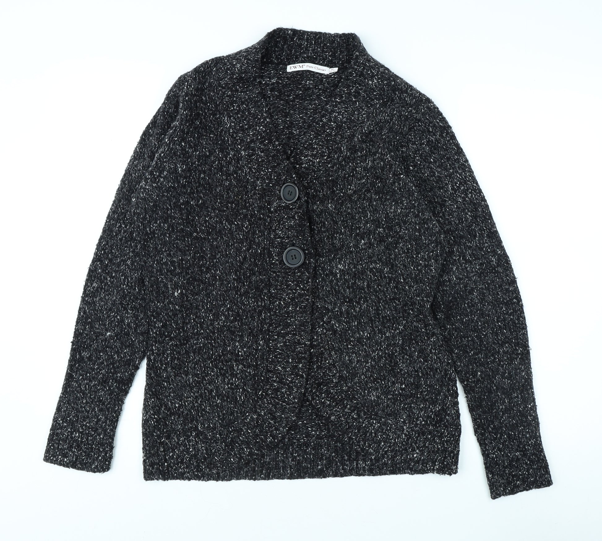Discover the classic elegance of this EWM Women's Chunky Knit Cardigan, perfect for autumn and winter. Crafted in a versatile black hue, this cardigan is ideal for casual occasions when comfort meets style. The medium size (14) ensures a regular fit, catering to women's unique style preferences. The cardigan showcases a collared neckline and long sleeves, enhancing its classic appeal. Made from a blend of acrylic, cotton, polyester, wool, and nylon, it promises warmth and softness. The button accents add a charming touch, making this piece a staple for your wardrobe. Machine washable for ease of care, the cardigan is excellent in condition, showing no signs of wear. Elevate your everyday look with this timeless piece, perfect for layering over any outfit.