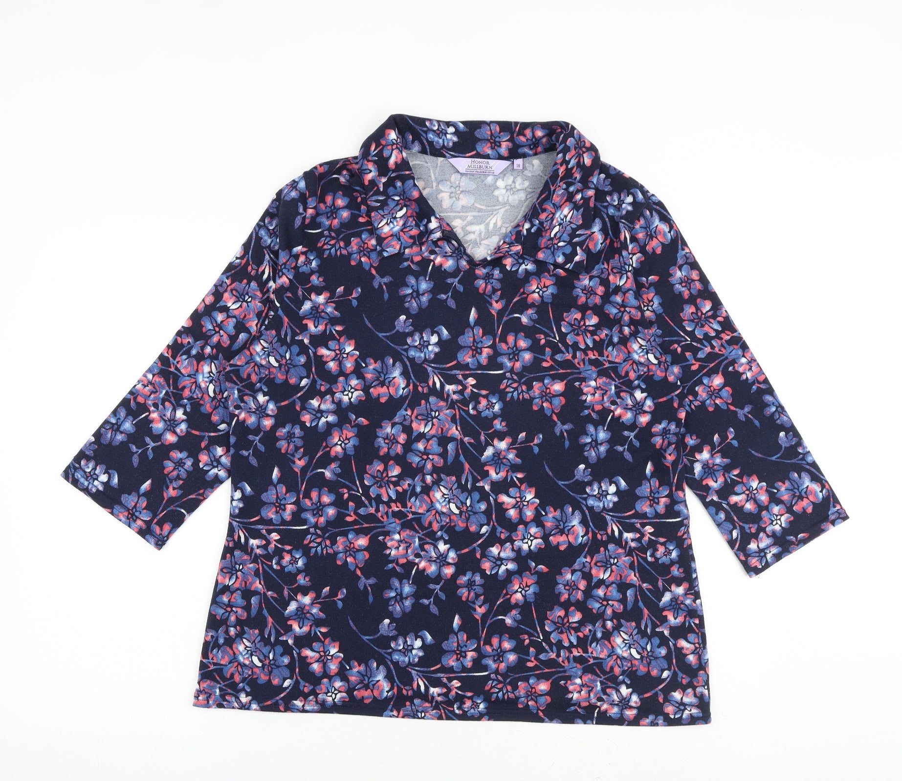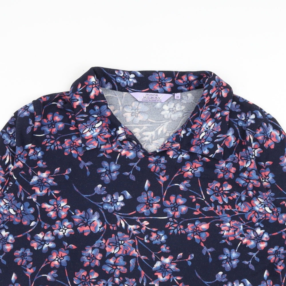Womens Blue Floral Polyester Basic Blouse Size 18 Collared