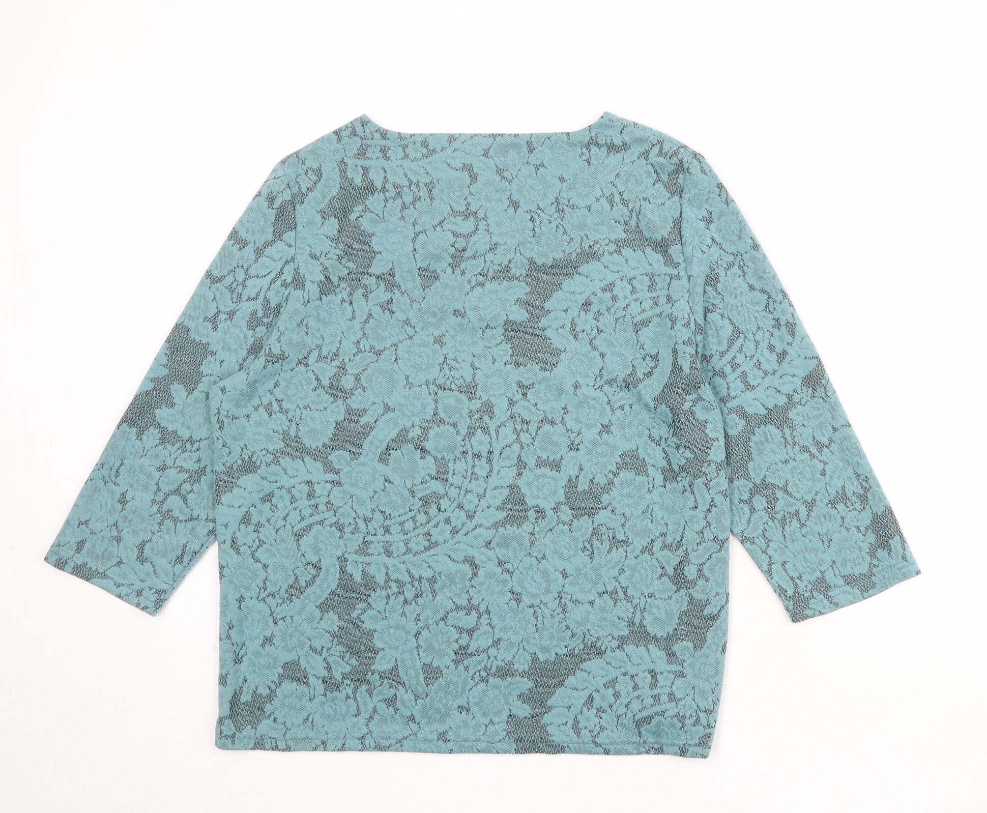 Womens Blue Floral Polyester Basic T-Shirt Size 18 V-Neck