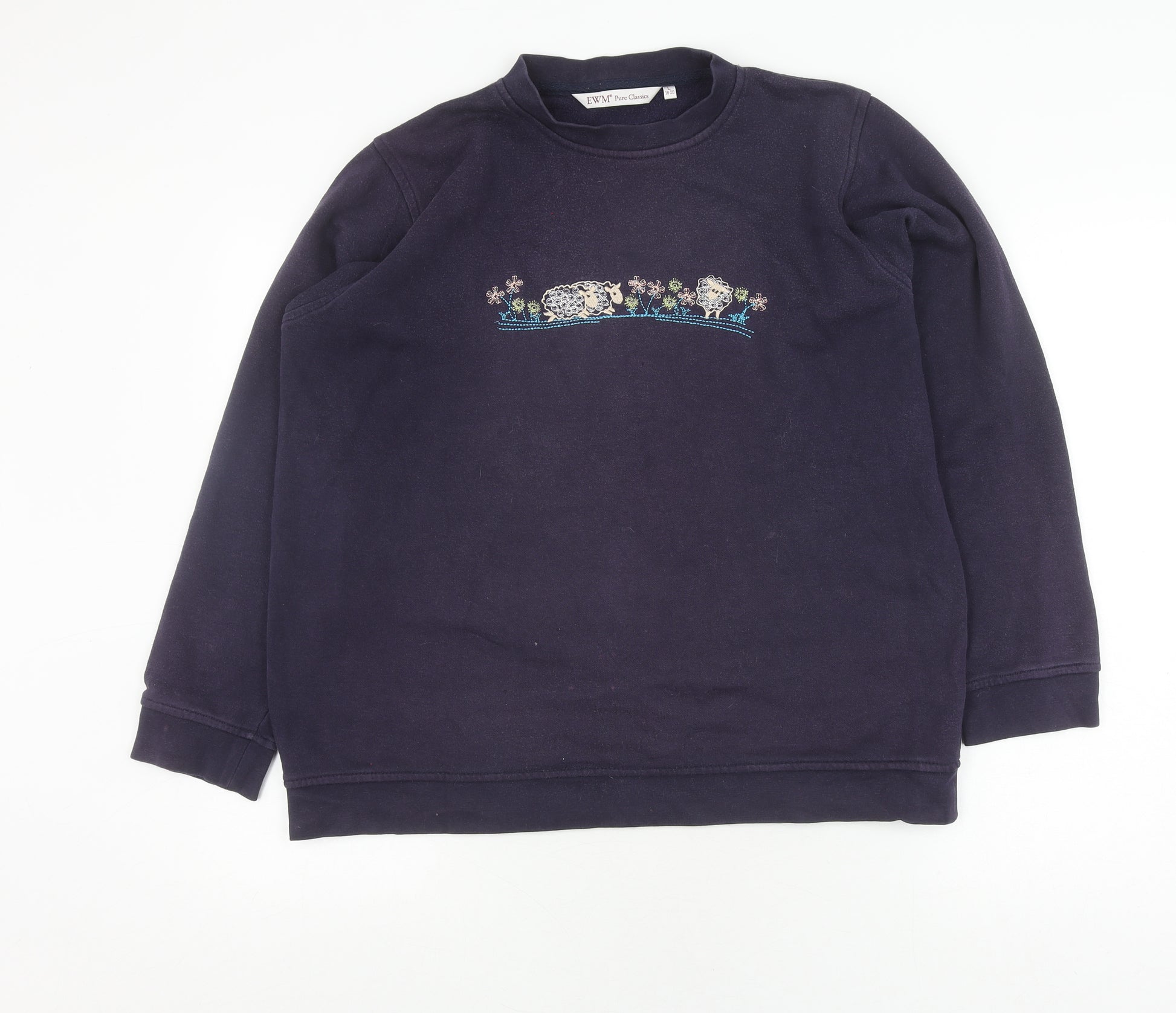 EWM Women's Blue Pullover Jumper L with Embroidery