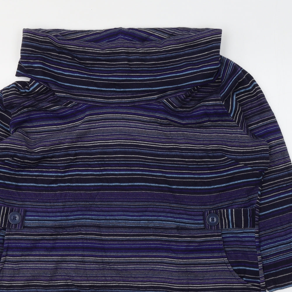 Womens Blue Striped Polyester Tunic T-Shirt Size 18 Roll Neck
