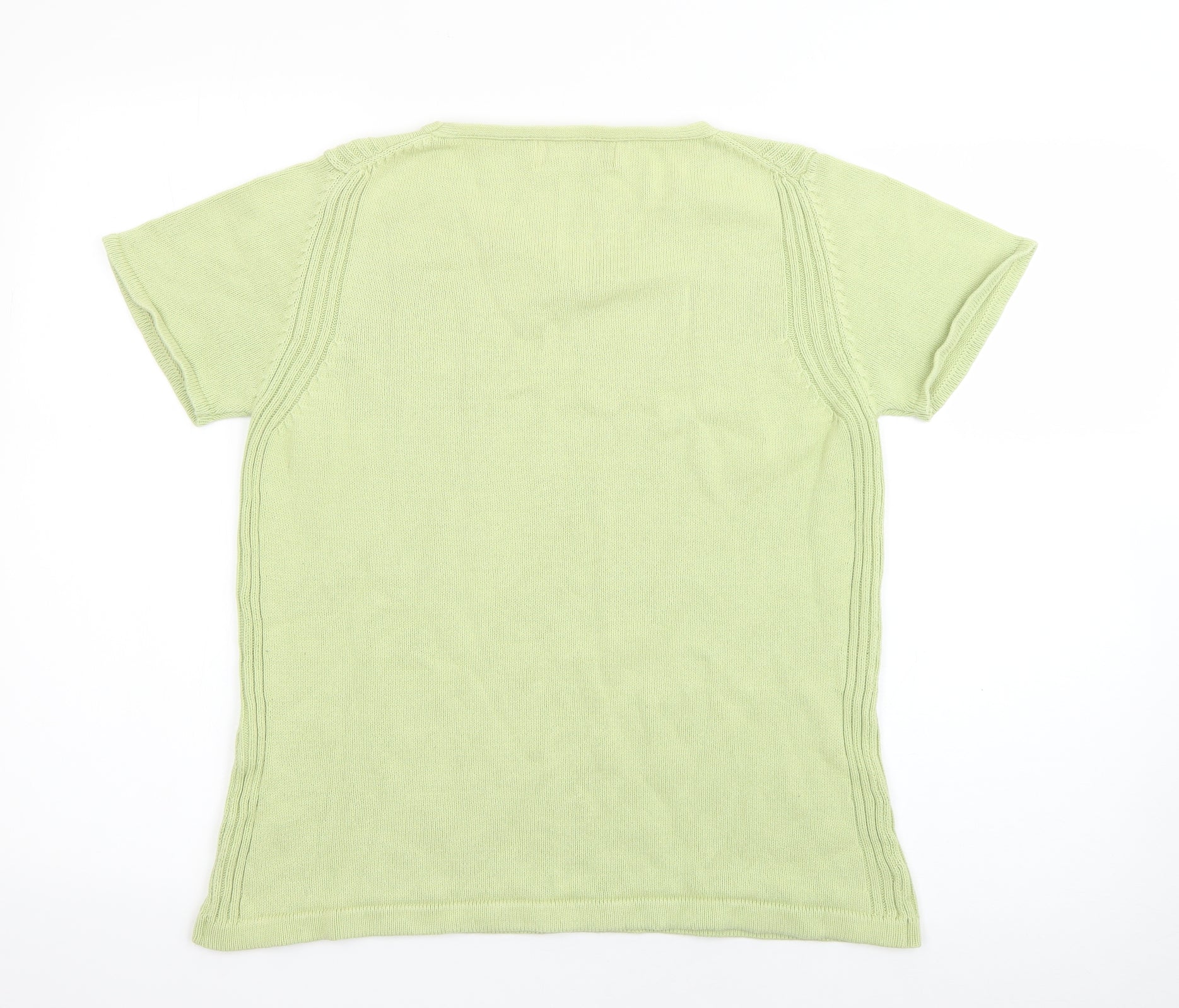 Womens Green Round Neck Cotton Pullover Jumper Size M