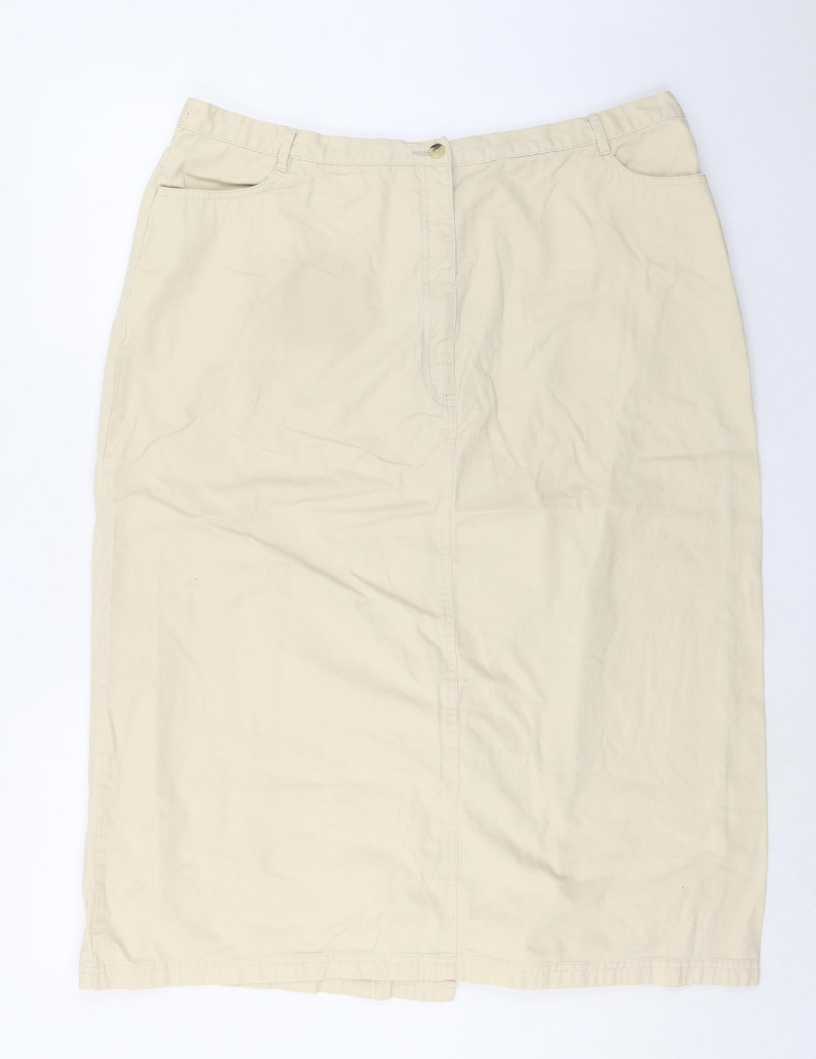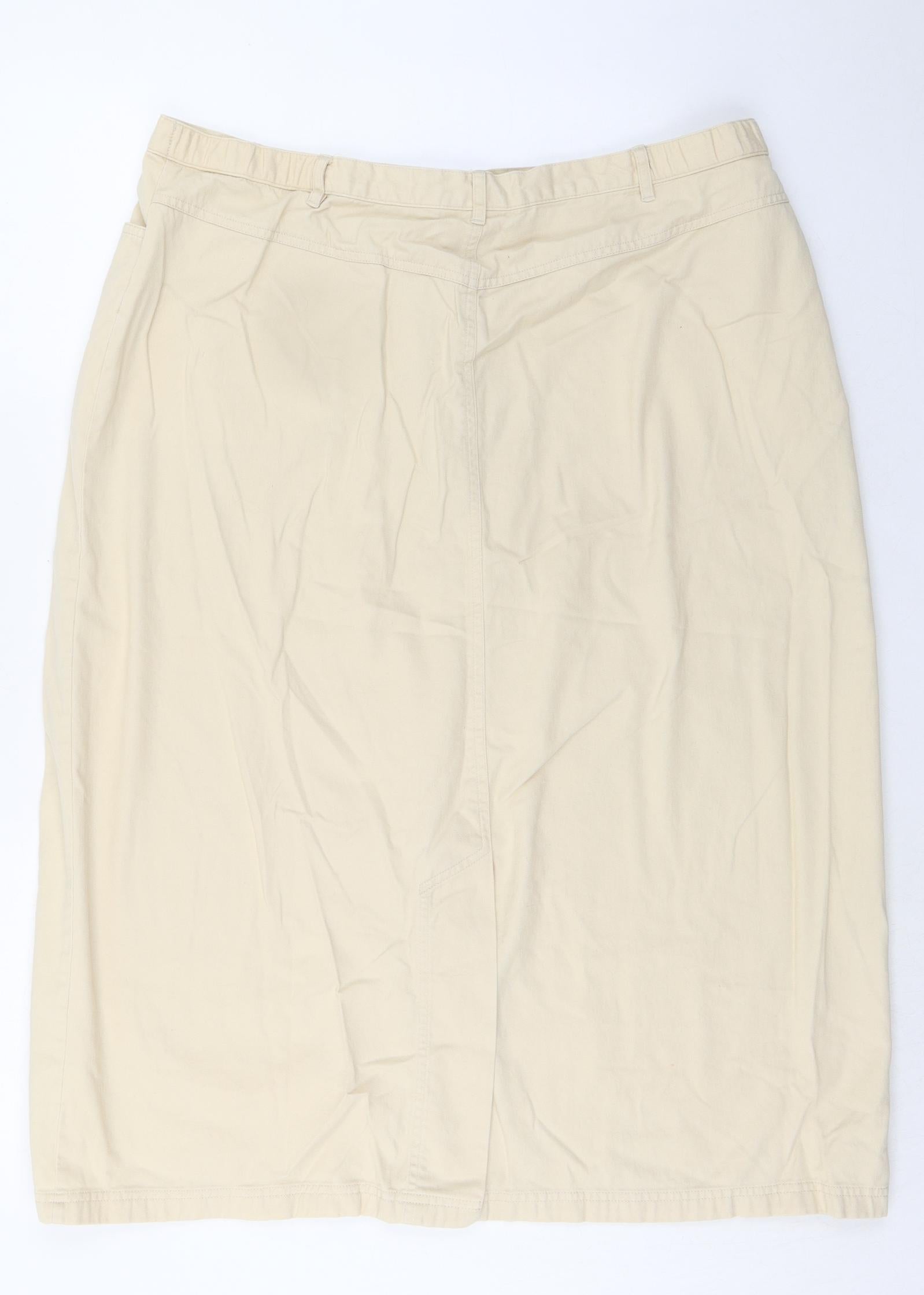 Womens Ivory Cotton Straight & Pencil Skirt Size 22 Button