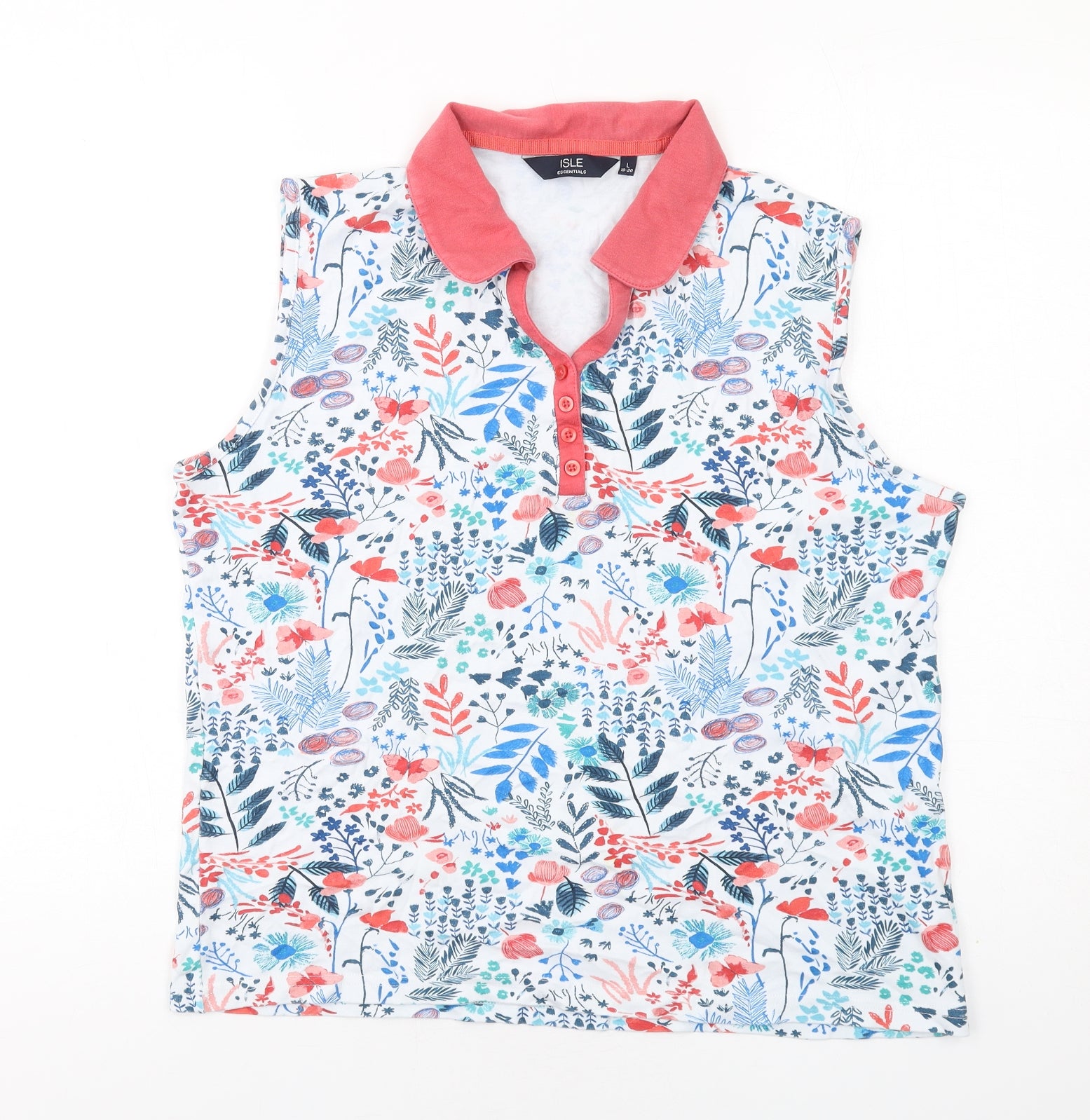 Womens Multicoloured Floral Cotton Basic Polo Size 18 Collared