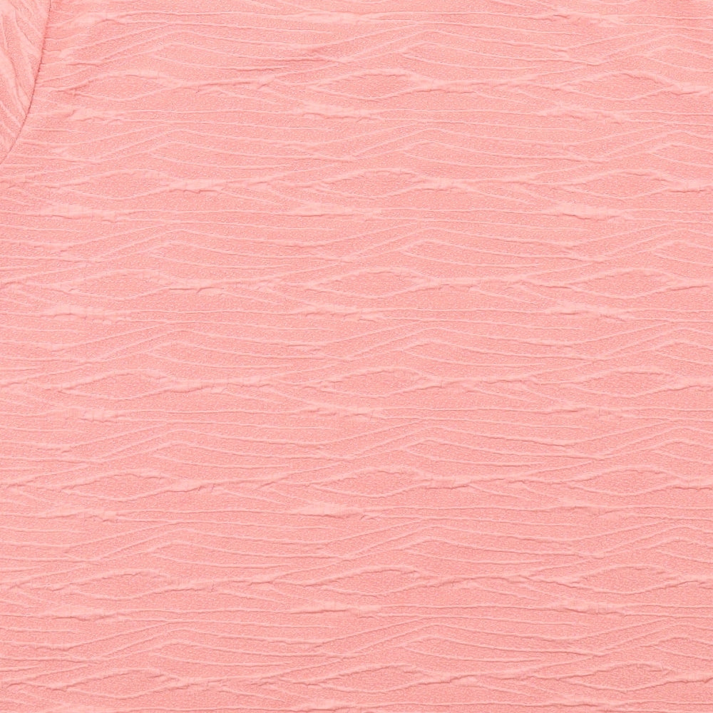 Womens Pink Polyester Basic T-Shirt Size S Round Neck