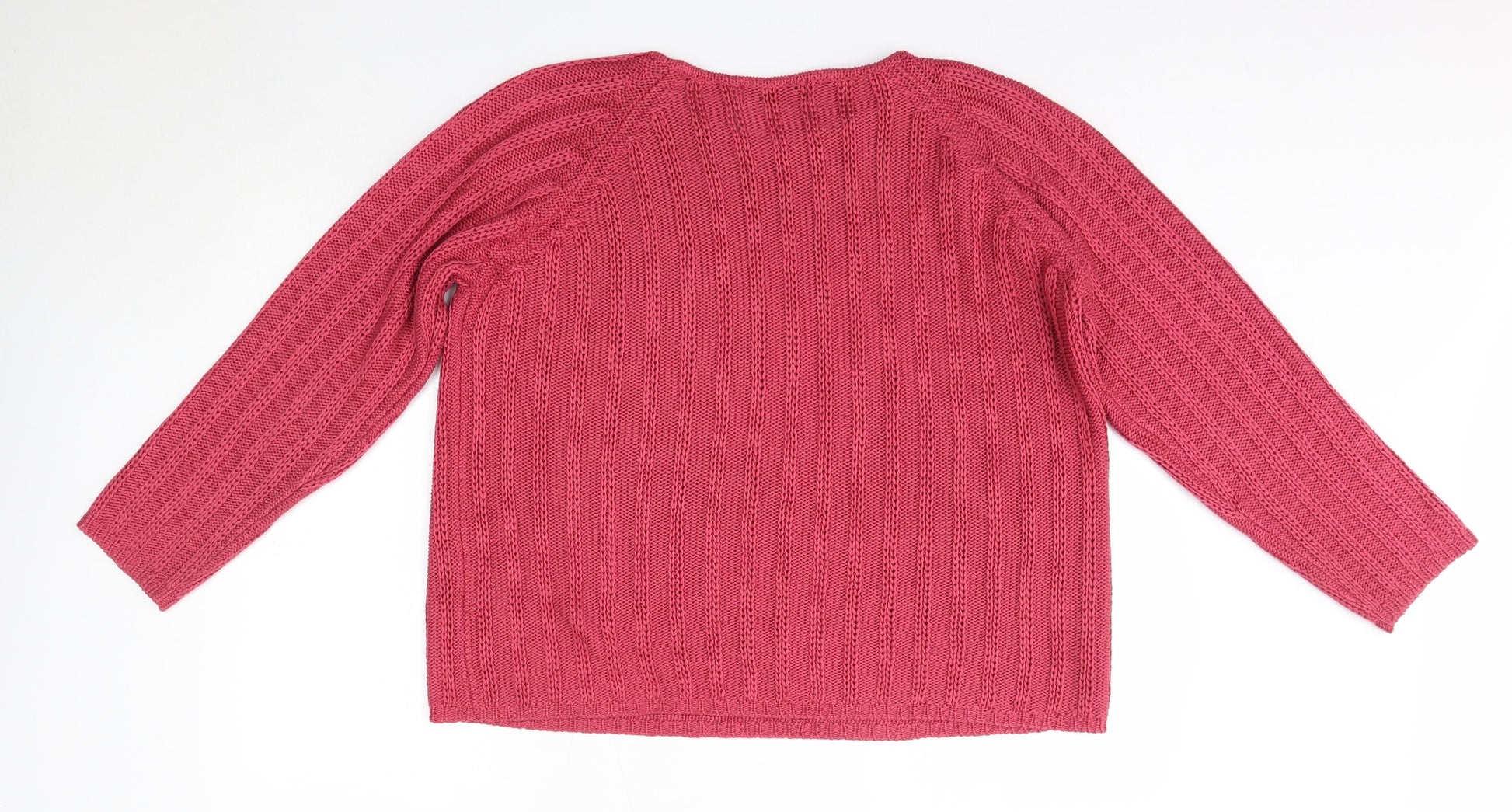 Womens Pink Round Neck Acrylic Pullover Jumper Size XL