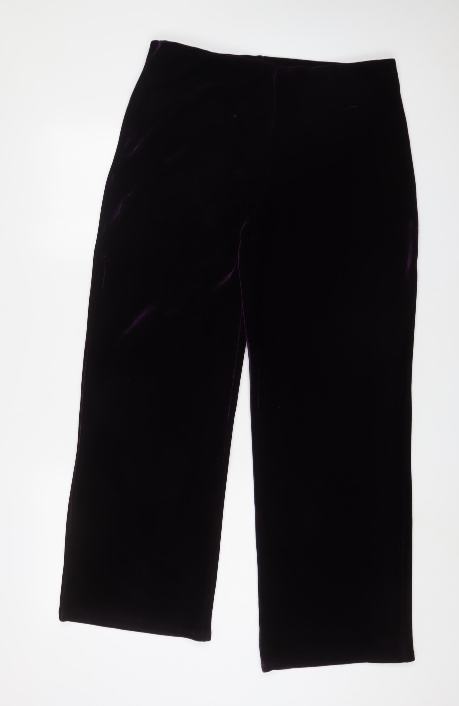 Womens Purple Polyester Trousers Size 14 L29 in Regular