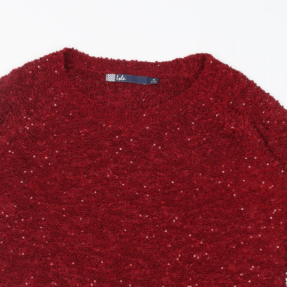 Womens Red Boat Neck Polyester Pullover Jumper Size 16 - Sequin detail