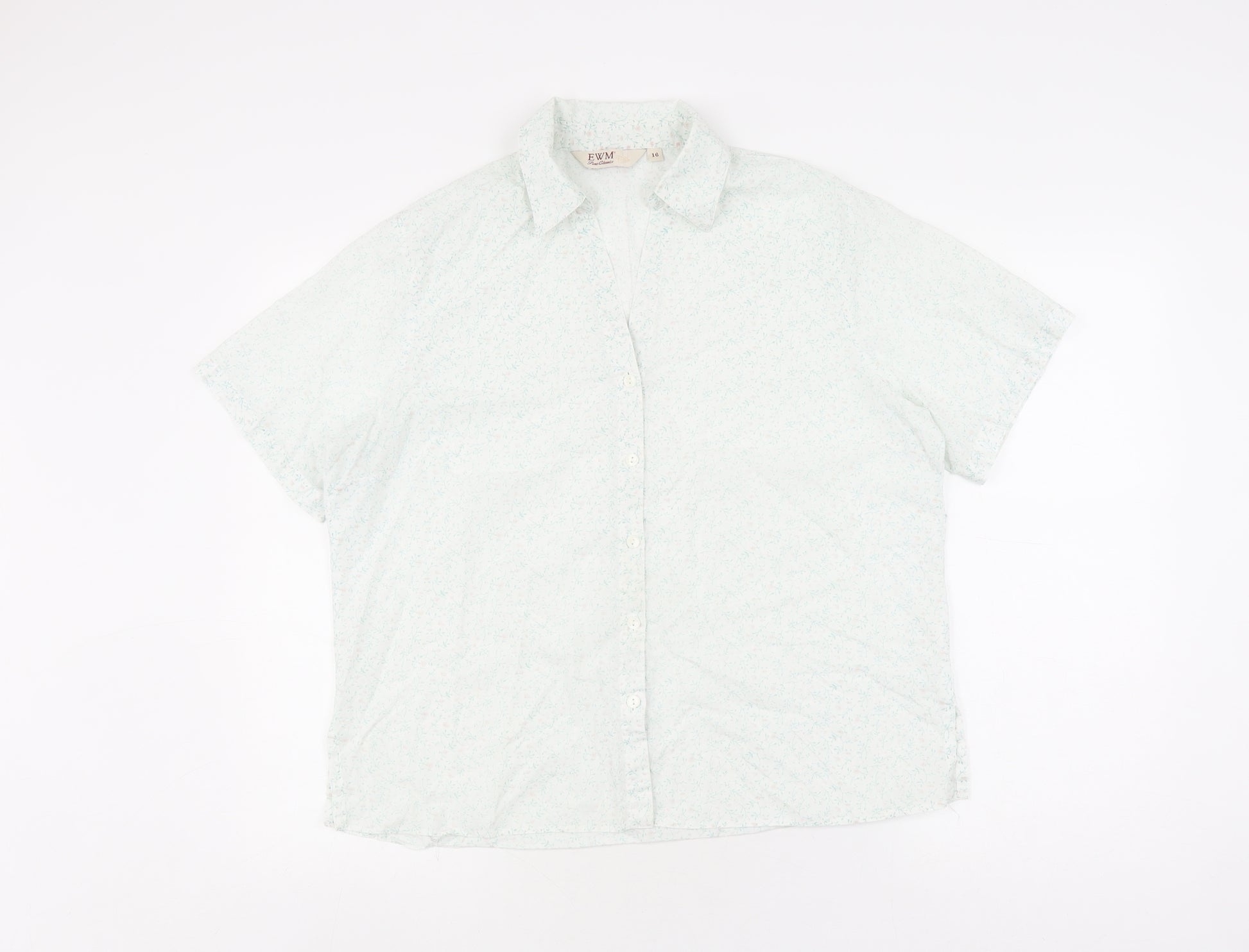 Elevate your wardrobe with this charming EWM women's button-up shirt in a size 16. Crafted for comfort and style, this piece features a delightful floral pattern set against a crisp white background, making it a versatile addition to your spring and summer collection. Designed in a regular fit, it offers a classic and relaxed look that's perfect for casual occasions. The short sleeves and collared neckline provide a timeless appeal while ensuring ease of movement. Made from a blend of 60% cotton and 40% polyester, this shirt promises breathability and durability. Though gently used, it remains in excellent condition, exhibiting minimal signs of wear. Ideal for those laid-back days, pair it with your favourite jeans or a skirt for an effortlessly chic ensemble. Machine washable for easy care, this shirt is a must-have for your casual outing wardrobes.