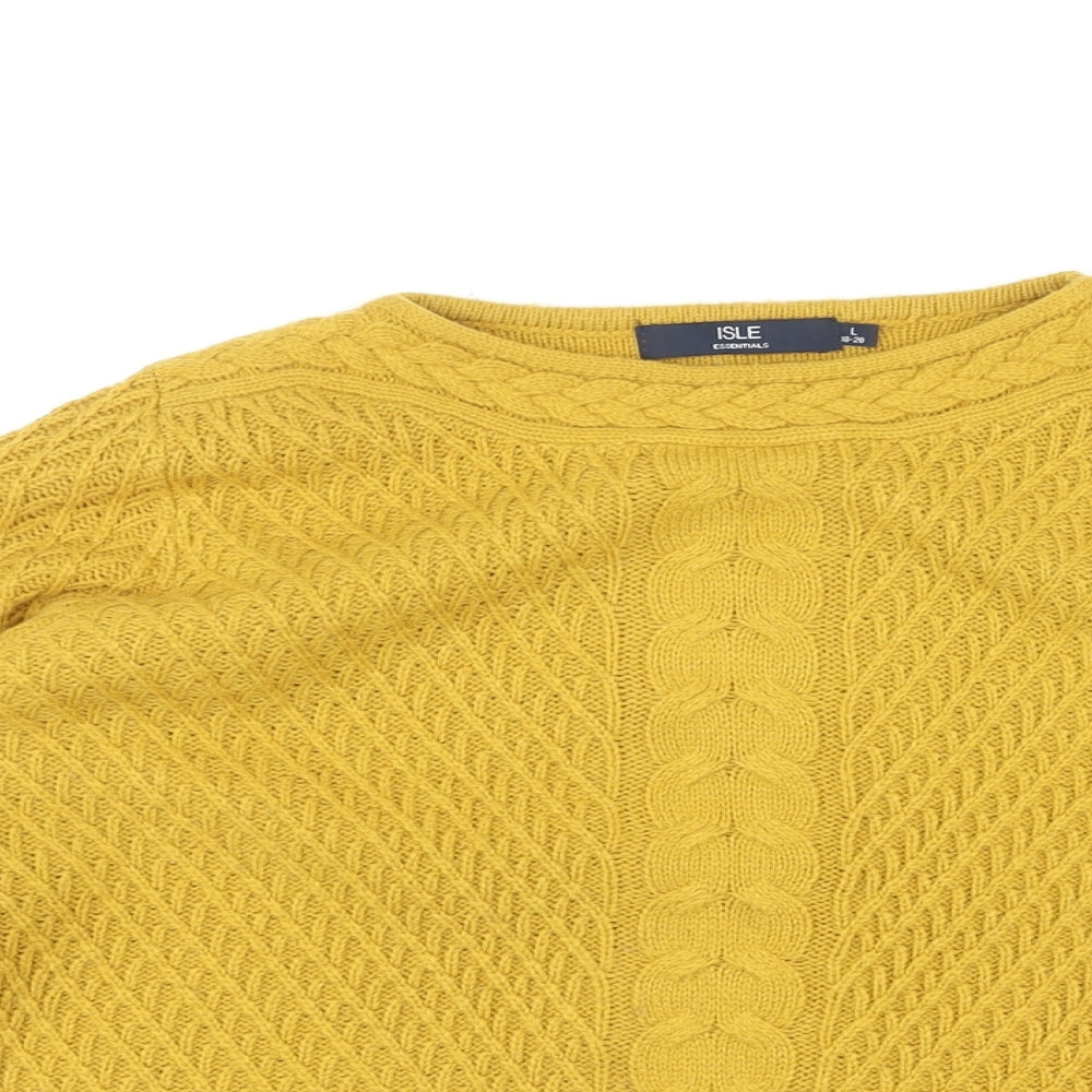 Womens Yellow Round Neck Acrylic Pullover Jumper Size L - Textured