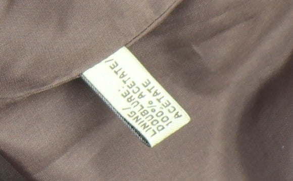 This elegant brown pea coat jacket from Excursion offers timeless style and sophisticated craftsmanship. Tailored for women, the jacket is made from 100% silk, giving it a beautifully smooth texture and lightweight drape perfect for transitional seasons such as spring and autumn. The luxurious silk outer shell ensures a refined appearance and comfortable wear, while the interior is fully lined with 100% acetate for added softness and easy movement. Designed in a classic short length, this jacket features a smart double-breasted silhouette with polished button fastenings that accentuate its structured design. The lapel collar and button cuffs enhance its polished yet versatile style, making it a fitting choice for casual outings, work meetings, or refined social settings. Two practical front pockets add both convenience and functionality, while the comfortable regular fit complements various body shapes effortlessly. This Excursion jacket remains in excellent pre-loved condition with only the slightest signs of gentle wear, maintaining a clean, well-kept look ready for immediate use. Its timeless design, natural brown tone, and quality silk fabric make it a stylish wardrobe staple that transitions seamlessly from day to evening wear. Pair it with tailored trousers for a professional outfit or layer it over jeans and boots for a smart-casual combination. With its subtle design details, rich fabric, and versatile styling, this women’s Excursion pea coat is an ideal piece for those who value sophistication and classic fashion. A quality jacket that adds understated luxury to any collection, designed to impress every time you wear it.