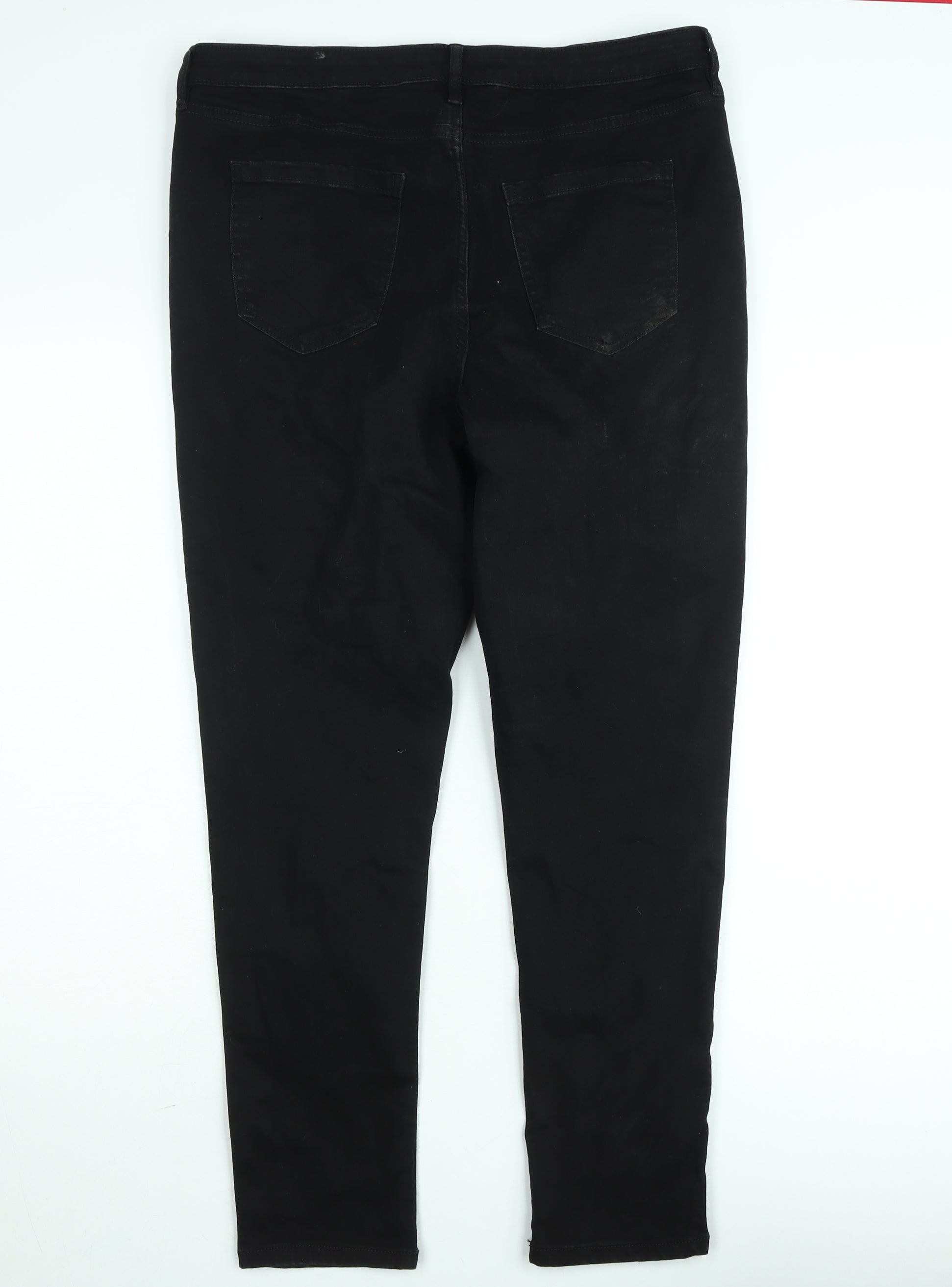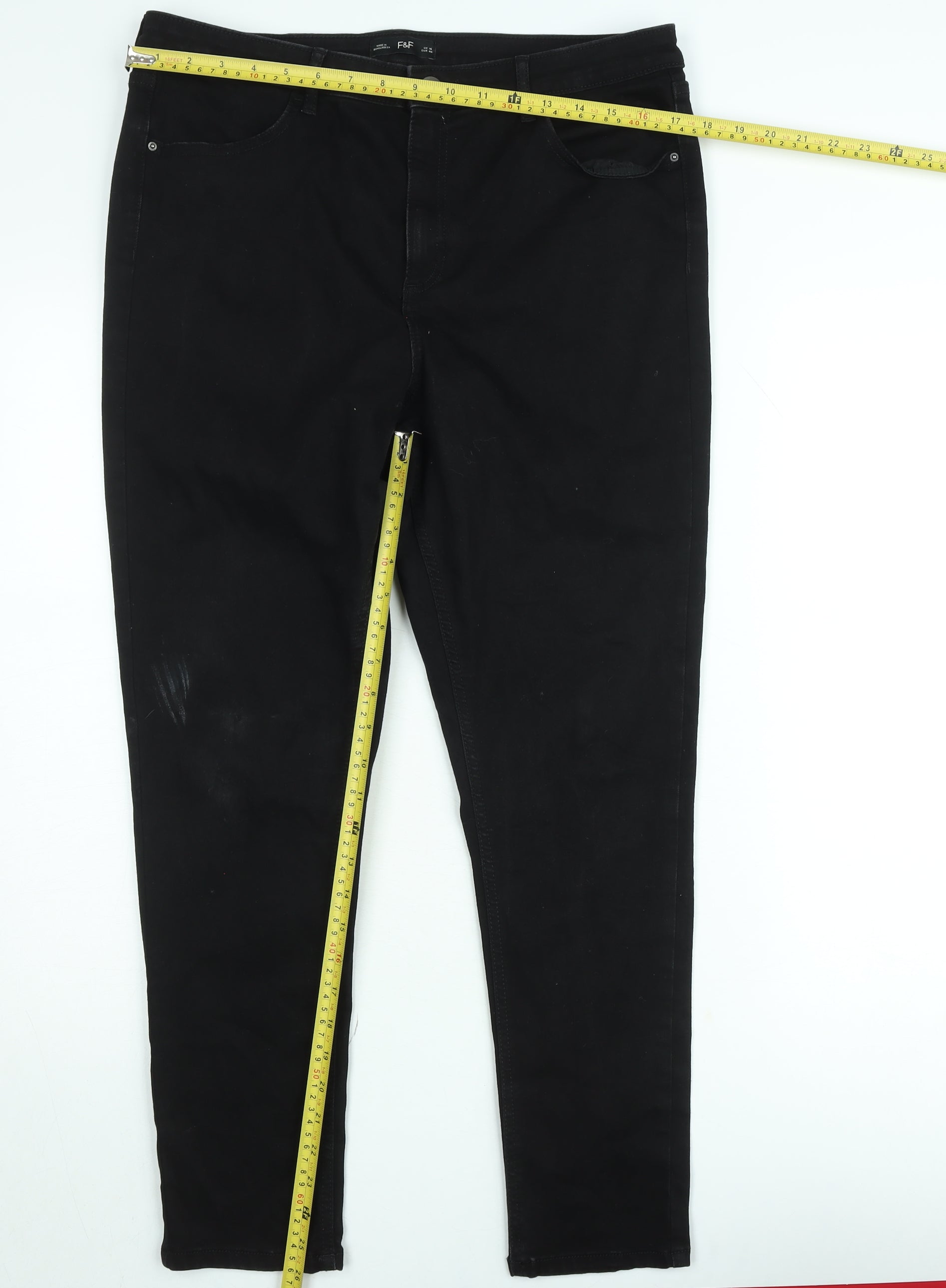 Step out in style and comfort with these F&F black slim fit denim jeans, designed for the modern man who values both practicality and a sleek, timeless appearance. Crafted from a durable and flexible blend of 68% cotton, 30% polyester, and 2% elastane, these jeans offer a comfortable stretch fit that moves easily with your body. The dark black shade gives them a versatile edge, ideal for pairing with casual T-shirts for a relaxed look or a crisp button-down shirt for a more polished outfit. The slim, tapered silhouette creates a flattering profile, while the mid-rise design provides a contemporary cut that sits comfortably on the waist. Designed in denim with a dark wash finish, these jeans have a subtle texture and soft hand feel that makes them comfortable for all-day wear. The classic 5-pocket design ensures functionality with room for everyday essentials. The zip and button closure adds to the clean, classic aesthetic. Perfect for the autumn and winter seasons, they deliver warmth without compromising on breathability. The jeans also feature a small amount of wear on the thigh area, indicating light previous use but maintaining excellent condition overall. Machine washable for easy care, these jeans are built for lasting durability. Whether you’re headed out for a casual outing, an evening event, or simply dressing up your everyday look, these F&F black denim jeans are a wardrobe essential that combines sophistication with comfort. Offering excellent value, they’re a reliable addition to any man’s collection, balancing quality, practicality, and modern style in one versatile piece.