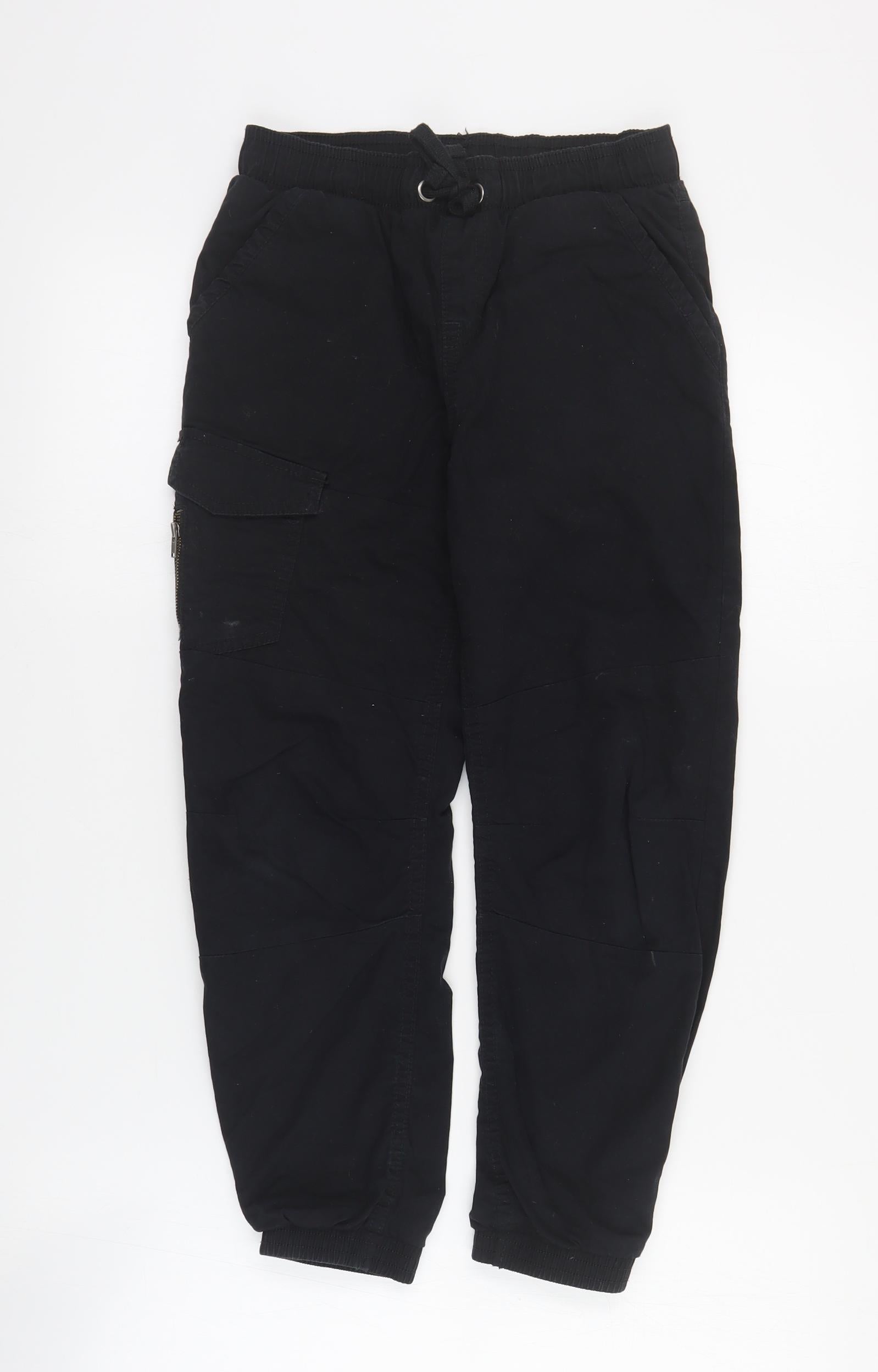 Boys Black Cotton Cargo Trousers Size 8-9 Years Regular Drawstring