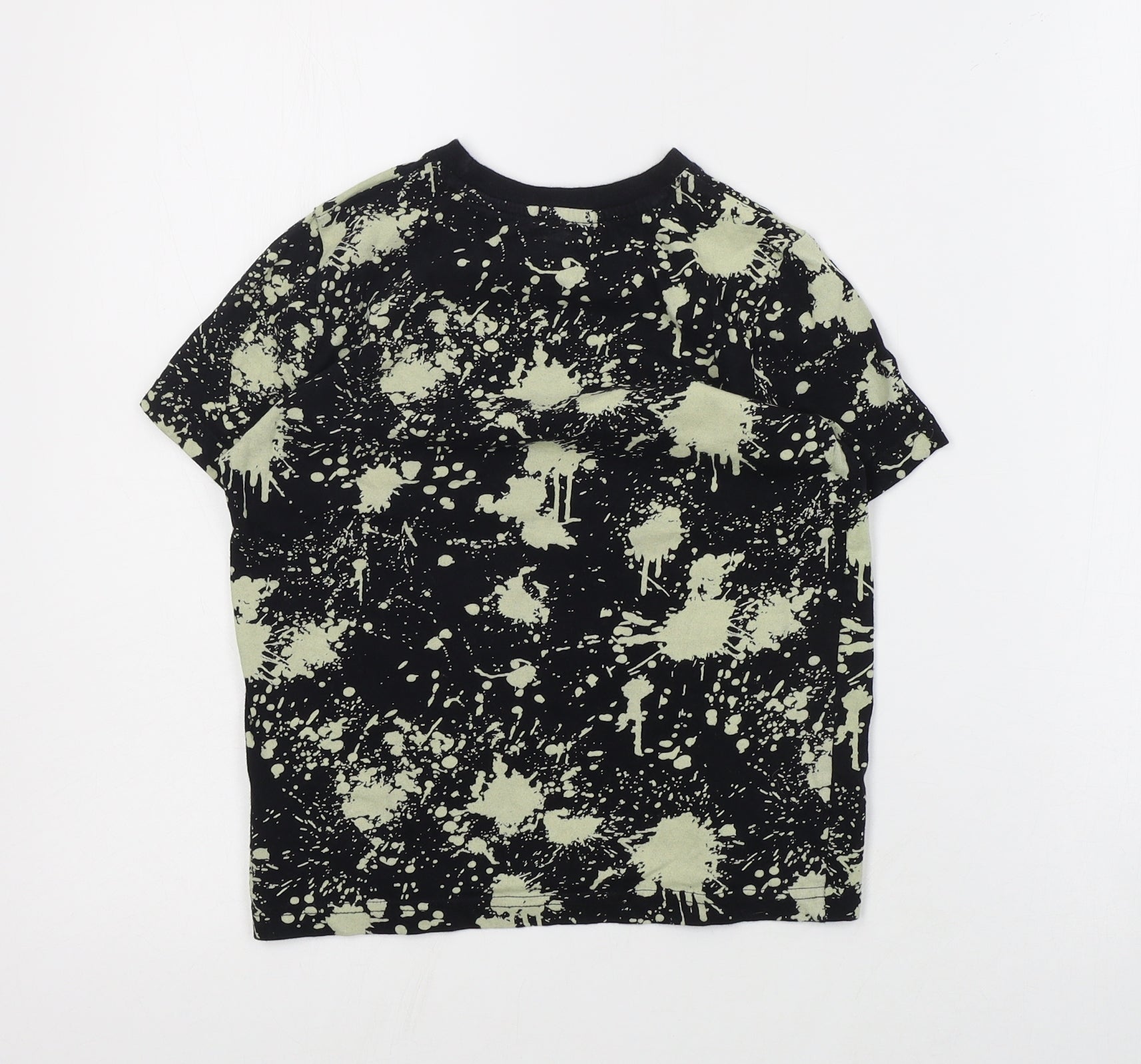 Boys Black Geometric Cotton Basic T-Shirt Size 6-7 Years Crew Neck Pullover