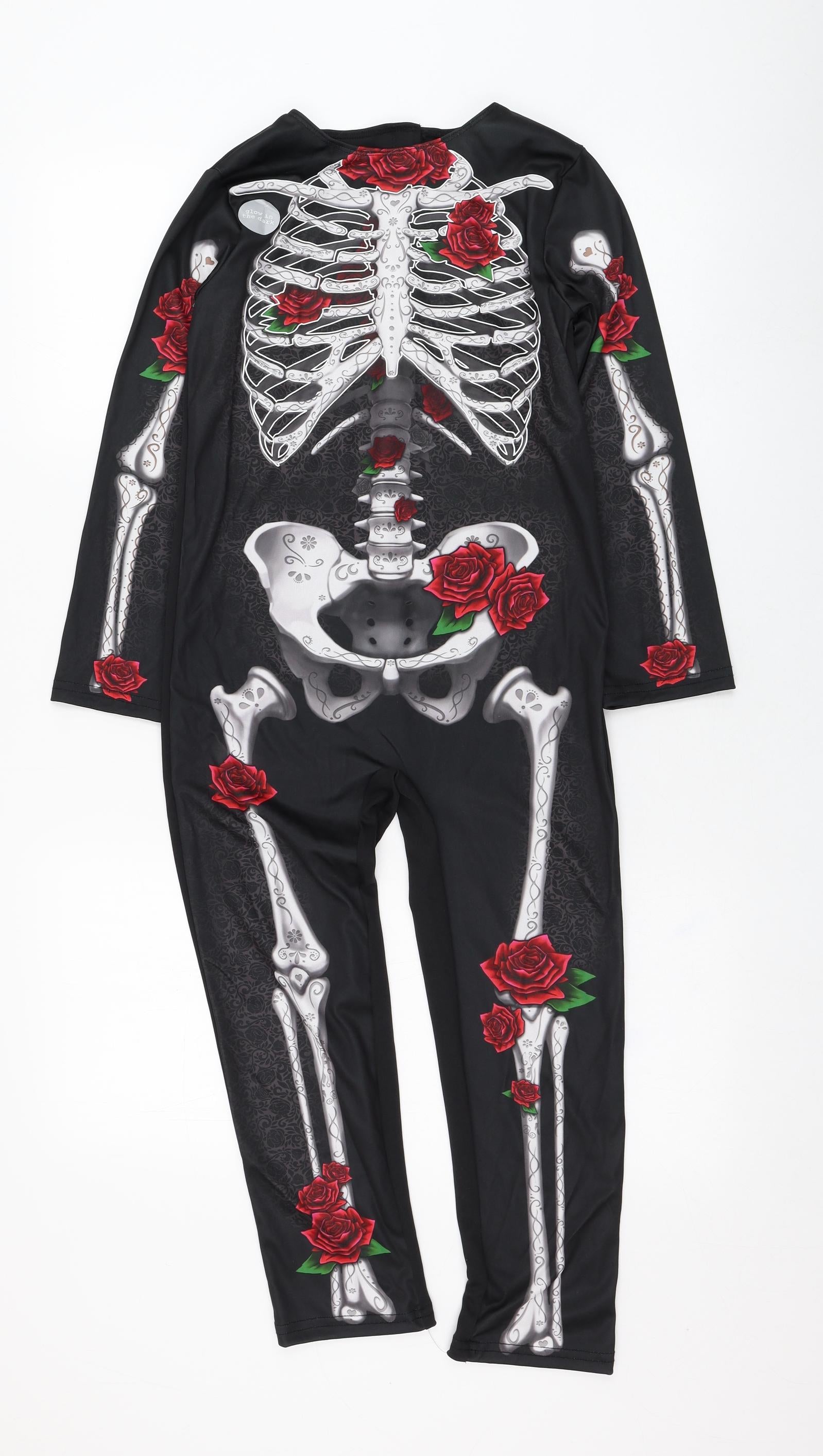 Boys Black Solid Polyester One Piece Size 7-8 Years Hook & Loop - Skeleton, Costume, Halloween