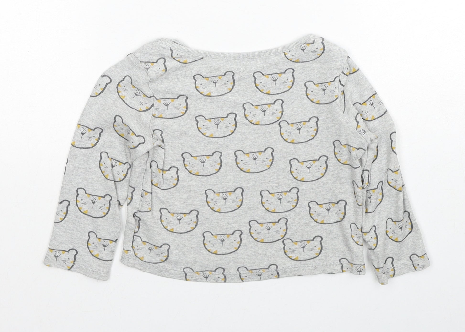 Boys Grey Geometric Cotton Basic T-Shirt Size 18-24 Months Boat Neck Pullover