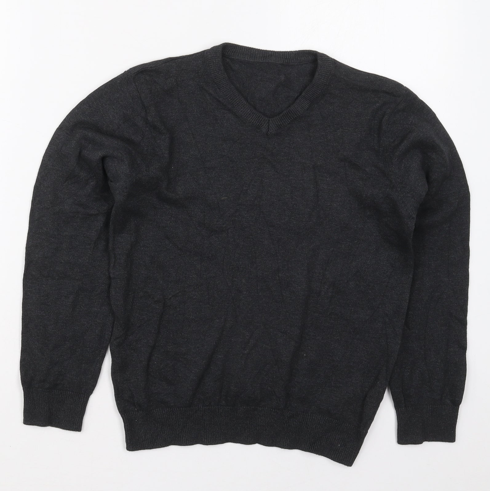Boys Grey V-Neck Cotton Pullover Jumper Size 9-10 Years Pullover