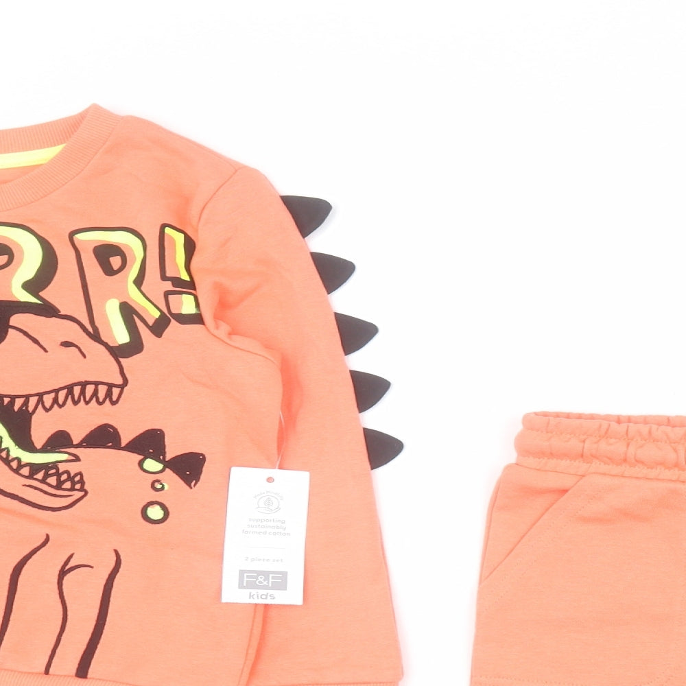Boys Orange Solid Cotton Lounge Set Size 5-6 Years Pullover - Dinosaur