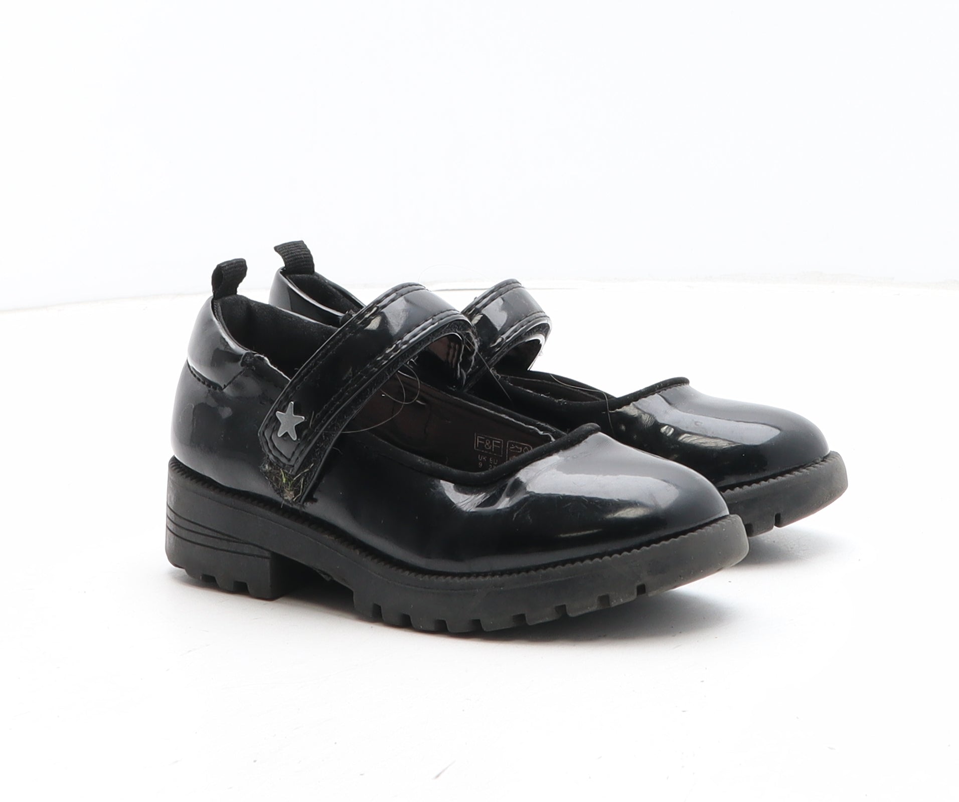 Girls Black Synthetic Mary Jane Casual UK 9 - Star Detail
