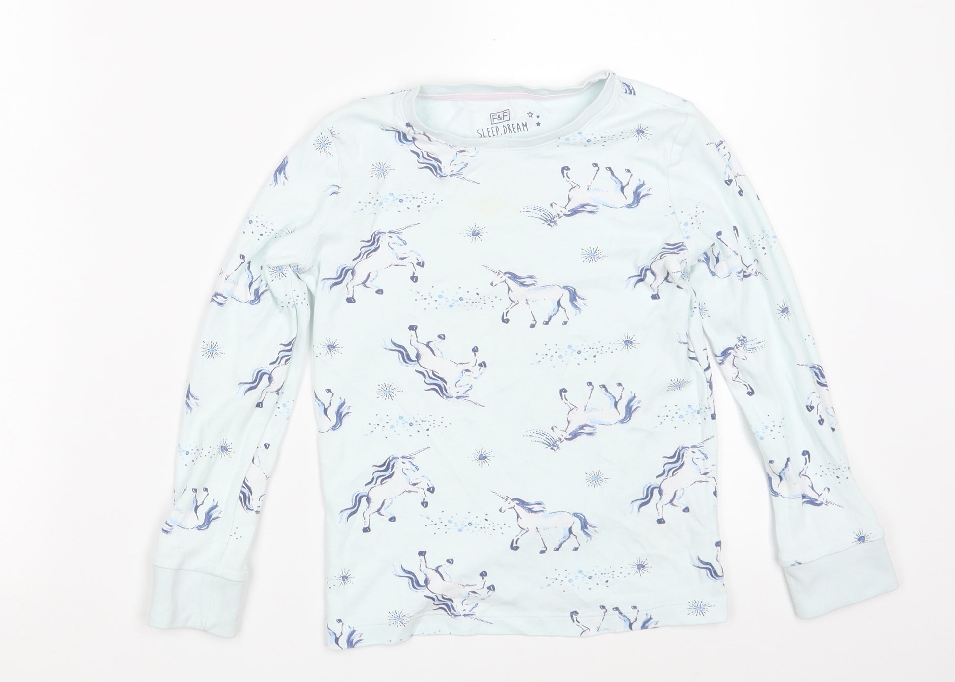 Girls Blue Solid Cotton Top Pyjama Top Size 6-7 Years - Unicorn