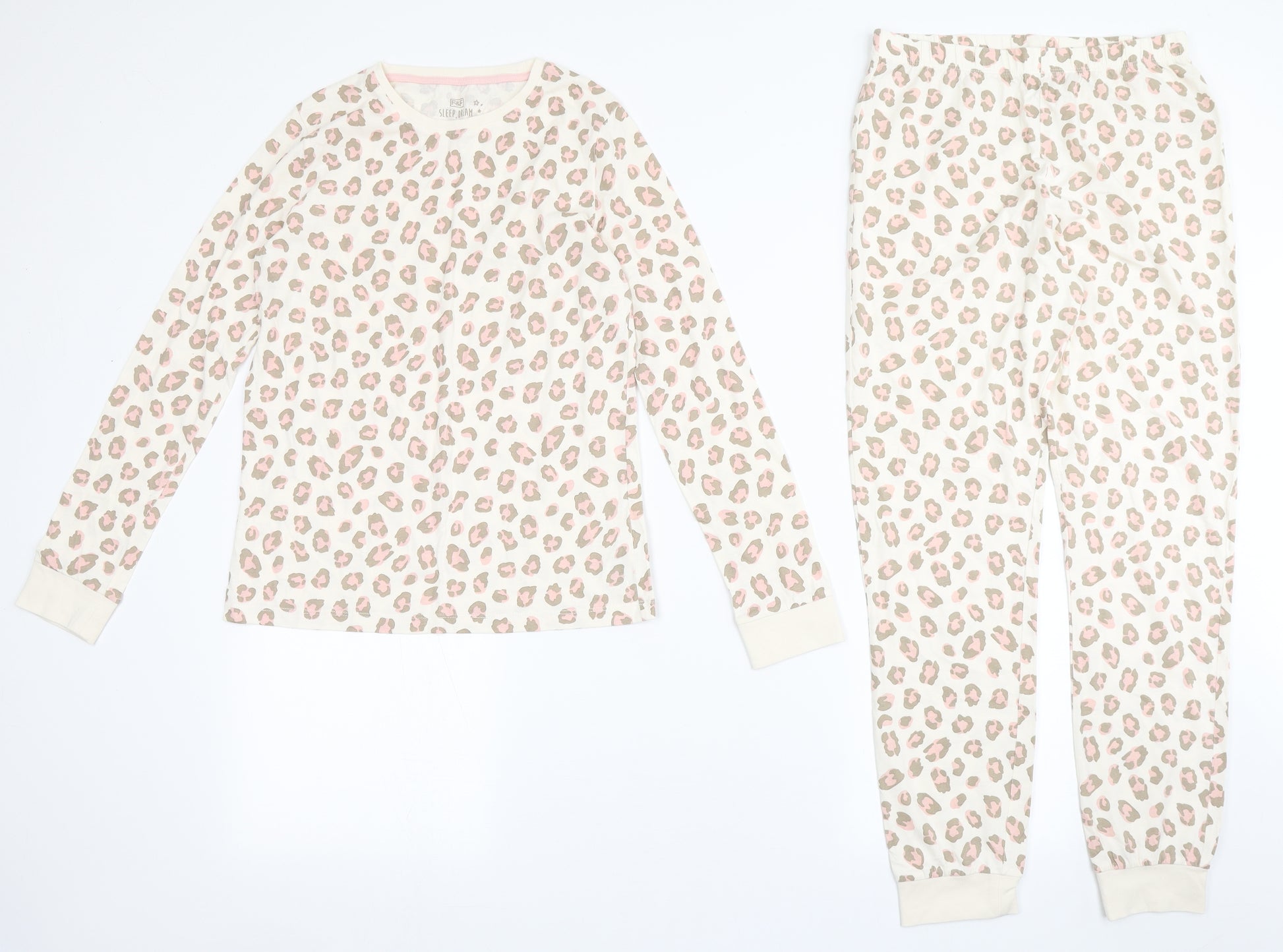 Girls Ivory Animal Print Cotton Top Pyjama Set Size 12-13 Years Pullover