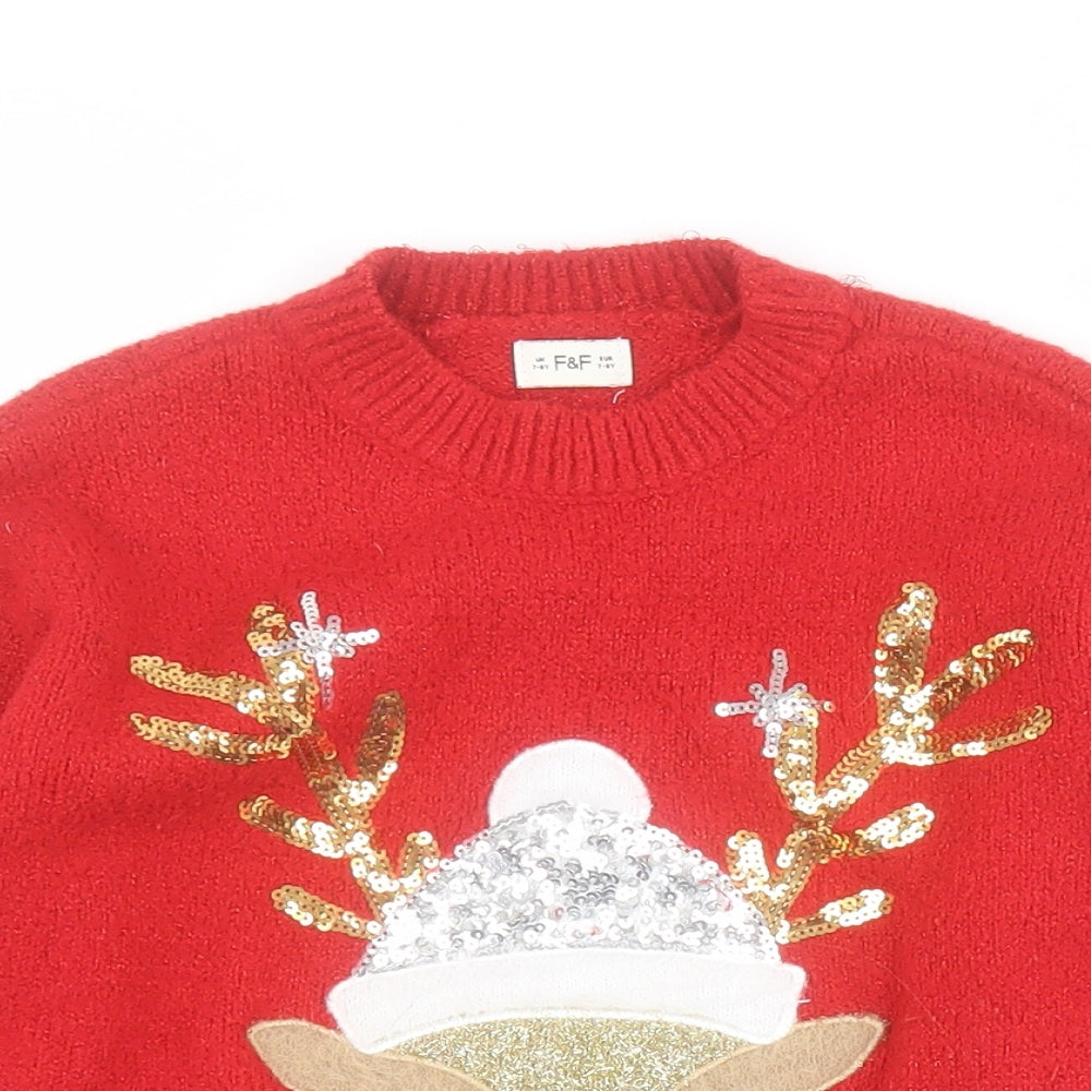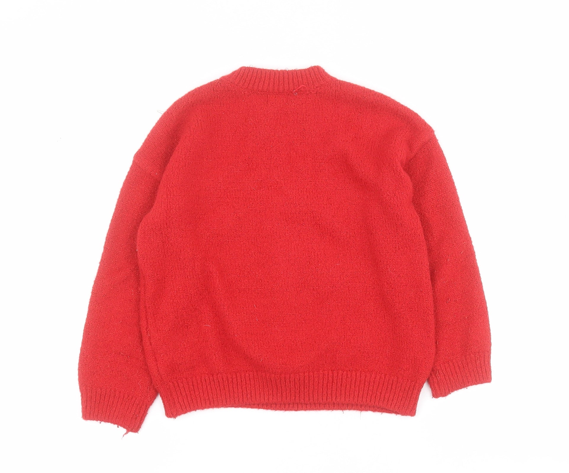 Girls Red Mock Neck Polyester Pullover Jumper Size 7-8 Years Pullover - Christmas