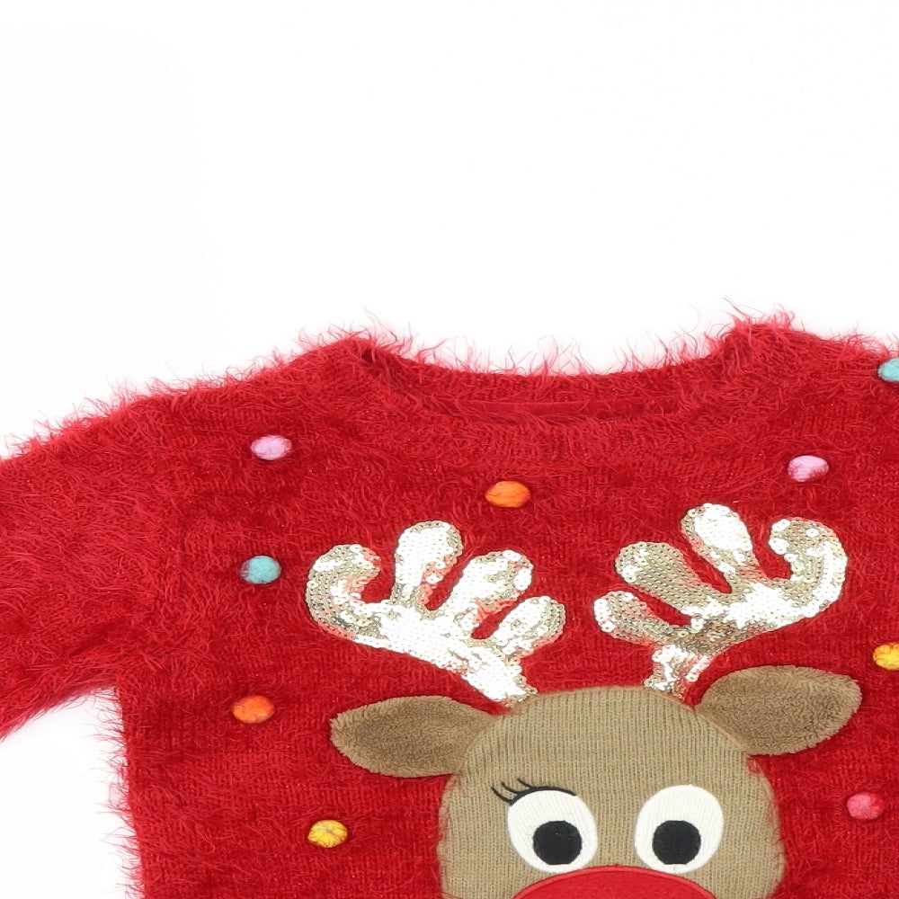 Girls Red Pullover Jumper Size 4-5 Years - Christmas Jumper