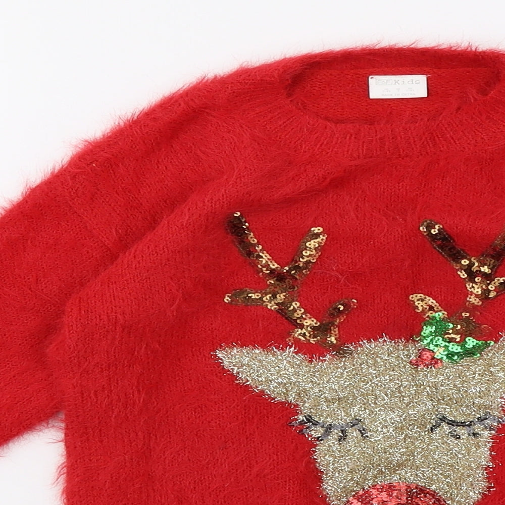 Girls Red Pullover Sweatshirt Size 7-8 Years - christmas