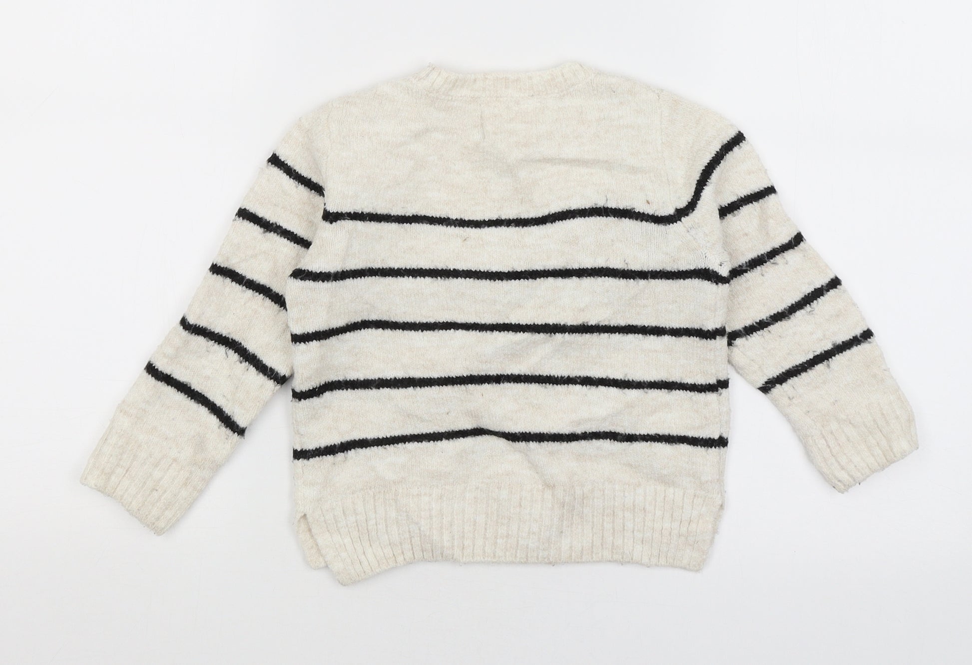 Girls White Striped Pullover Jumper Size 2-3 Years