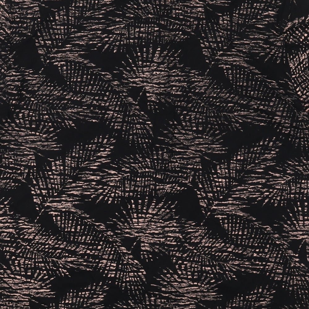 Mens Black Cotton Polo Size L Collared Pullover - Leaf Prints