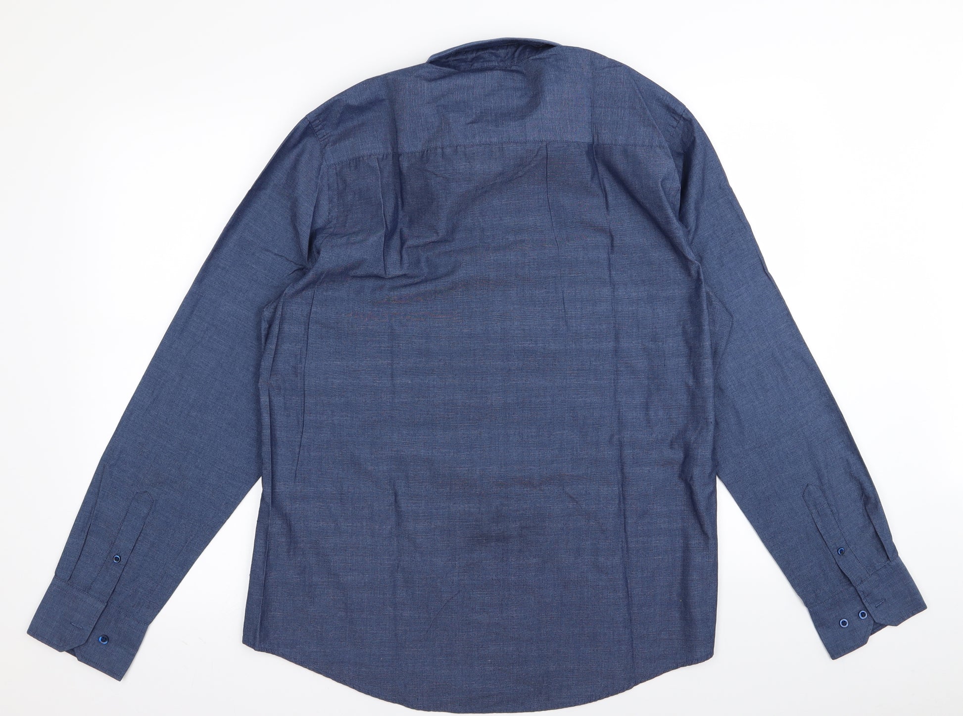 Littlewoods Mens Blue Striped Polyester Button-Up Size 15 Collared Button