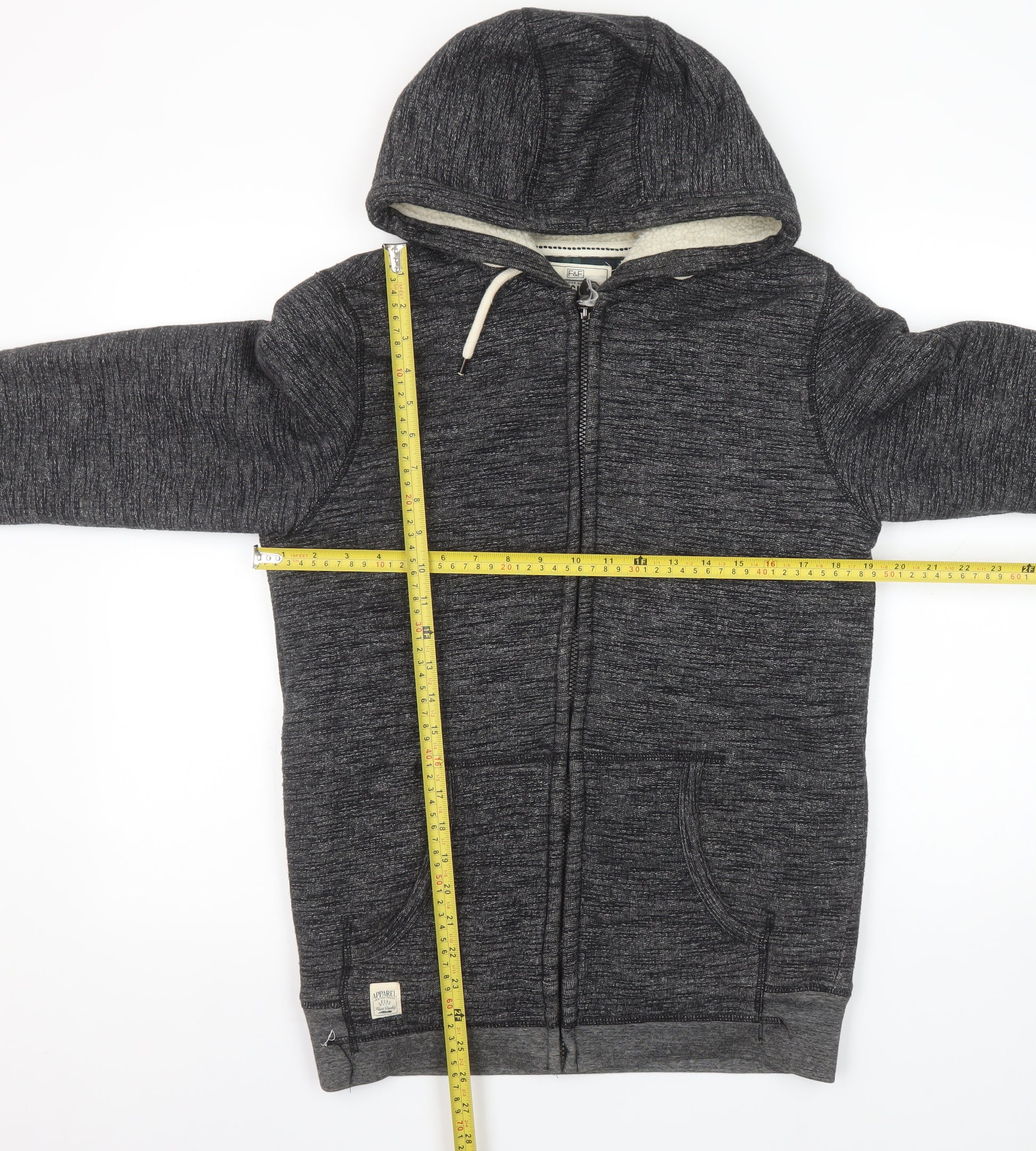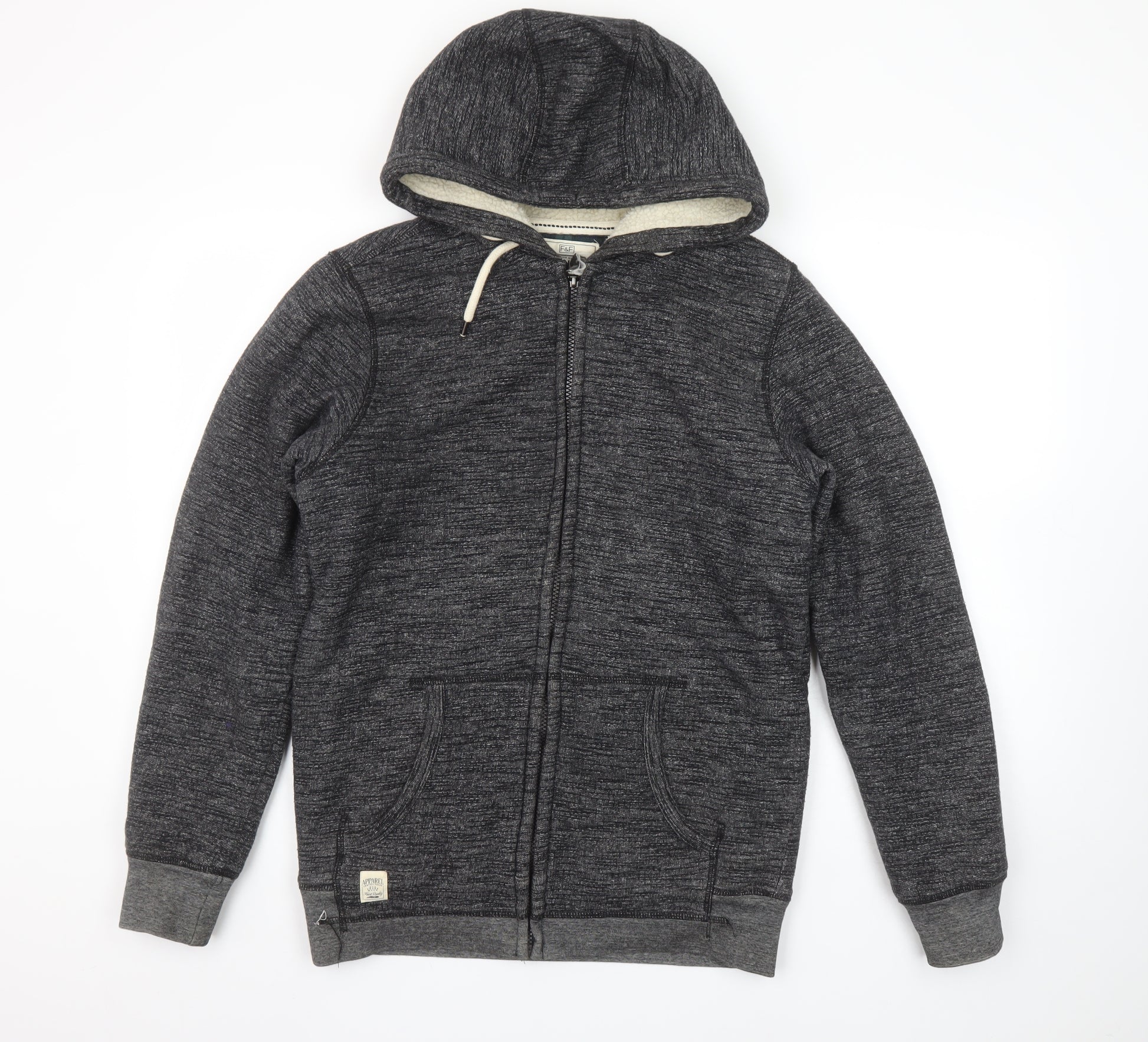 Add a laid-back layer to your wardrobe with this F&F men's grey full zip hoodie. Combining casual comfort with timeless style, this soft-knit piece is perfect for cooler days and relaxed weekends. Crafted from a breathable blend of 60% cotton and 40% polyester, it offers both softness and durability, ensuring it stays looking good wear after wear. Designed with practicality and comfort in mind, it features a zip closure for easy wear, an attached hood with drawstrings, and front pockets to keep your hands warm or store small essentials. The regular fit makes it ideal for layering over T-shirts or under coats, offering flexibility for every season. Finished in a versatile grey tone with subtle texture, it pairs effortlessly with jeans, joggers or casual trousers, making it a reliable choice for everyday wear. The long sleeves, ribbed cuffs and hem add to its snug, comfortable fit, while its soft brushed interior provides additional warmth for autumn and winter. Suitable for men seeking a casual, all-seasons essential that blends simplicity and practicality, this F&F full zip hoodie is perfect for walking, lounging or everyday outings. Machine washable for easy care, this hoodie keeps things simple and stylish – ready to wear straight out of the wash. Overall, this piece provides great value from a trusted brand, perfectly balancing comfort, quality and timeless men’s casualwear appeal. Ideal as a wardrobe staple or thoughtful gift for someone who enjoys stylish comfort.