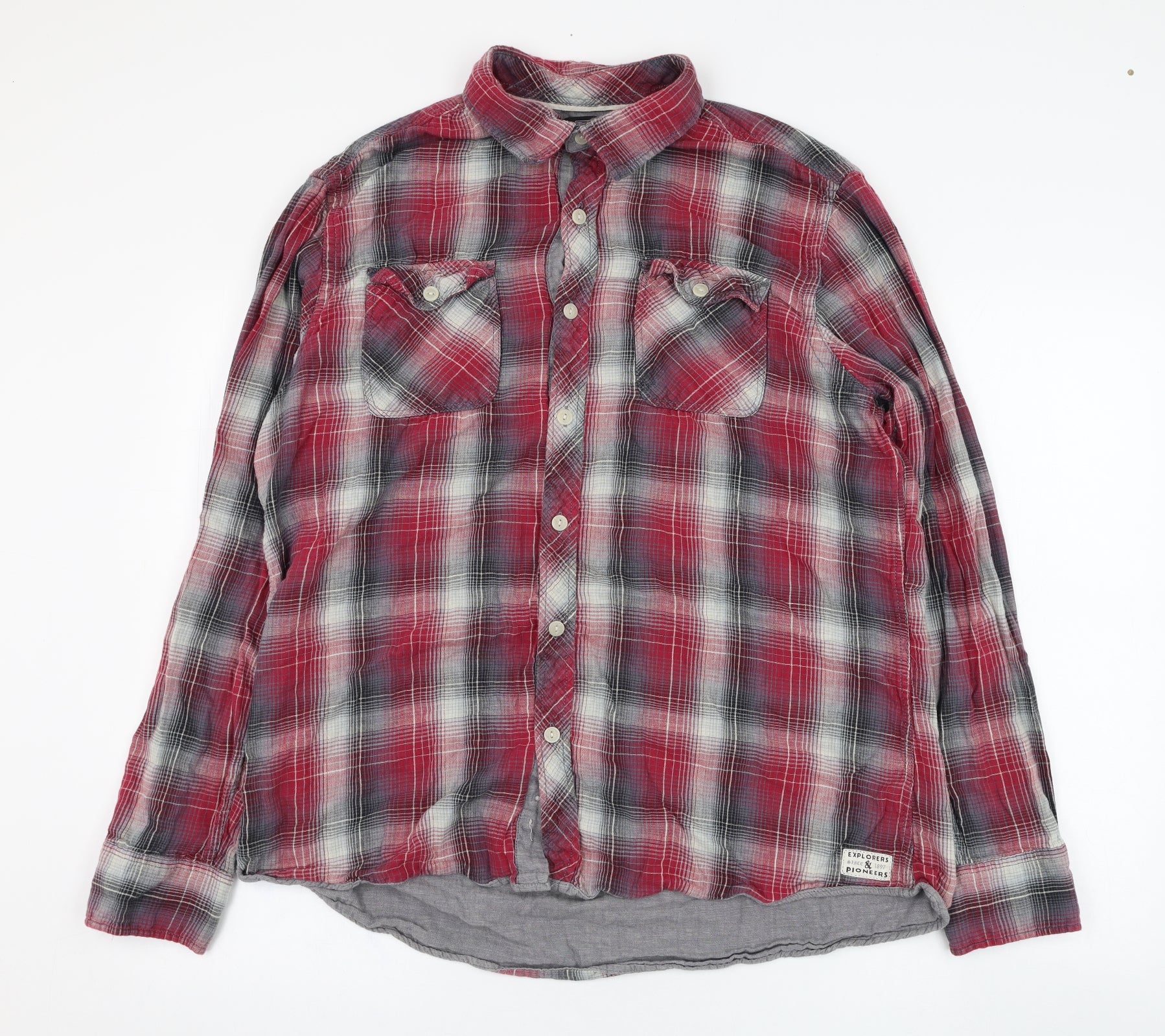 Mens Red Check Cotton Button-Up Size XL Collared Button