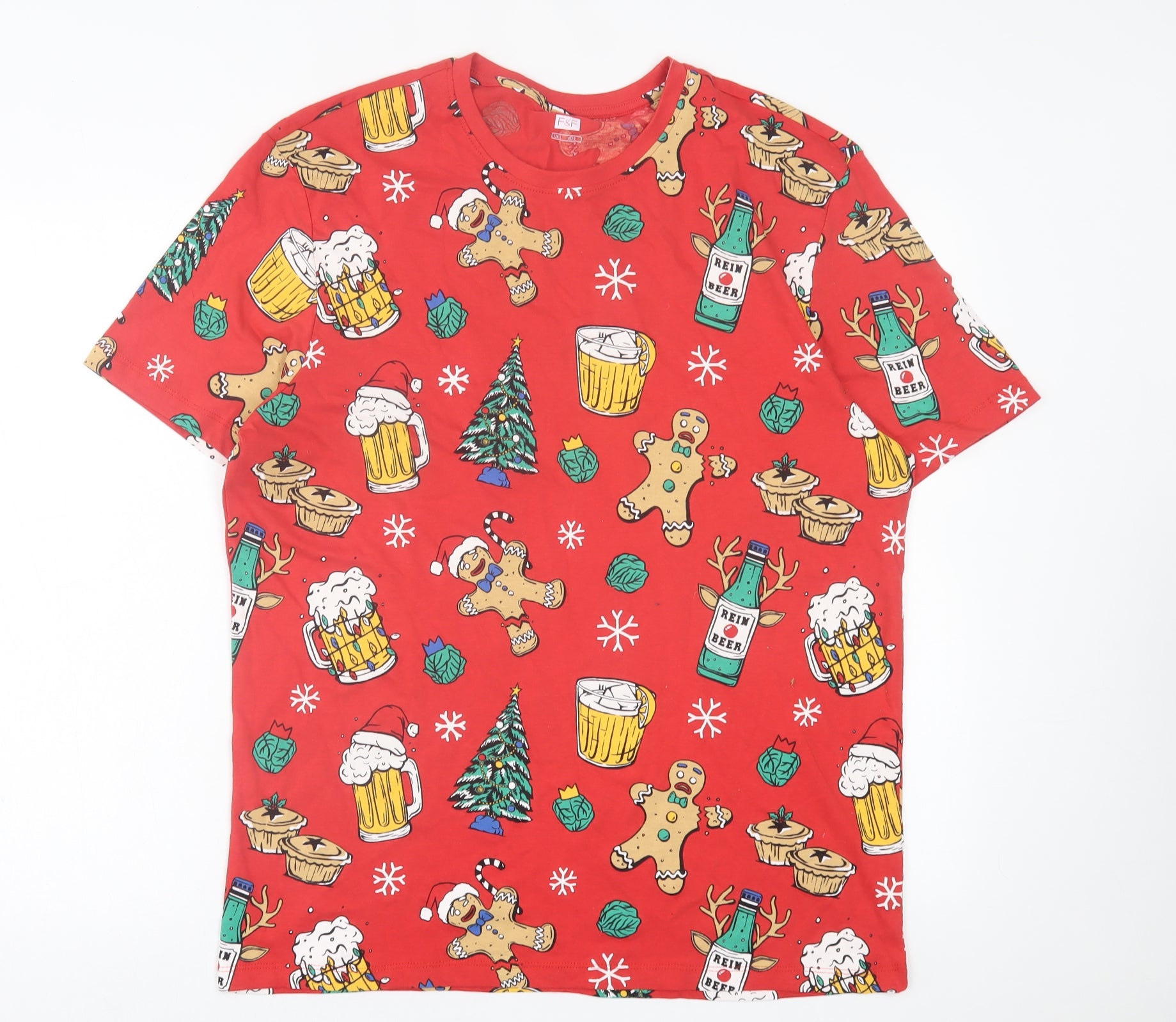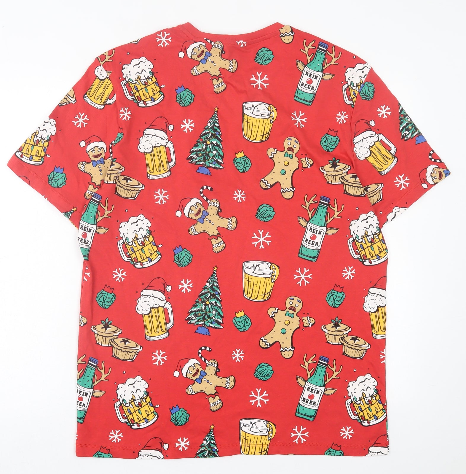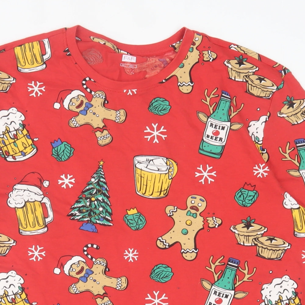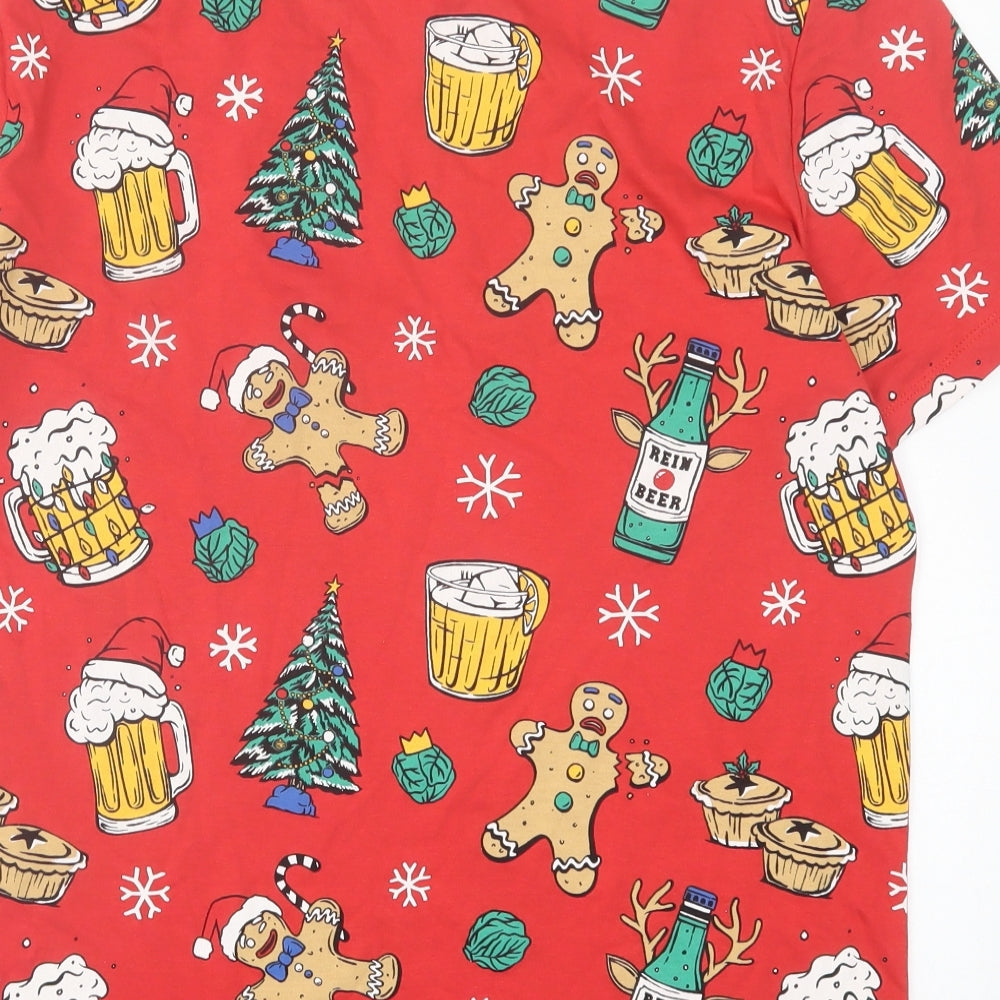 Mens Red Geometric Cotton T-Shirt Size L Crew Neck - Christmas