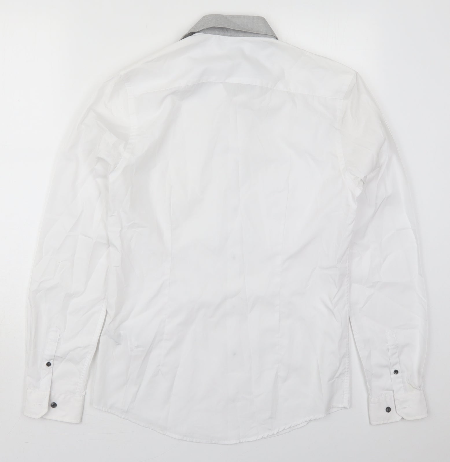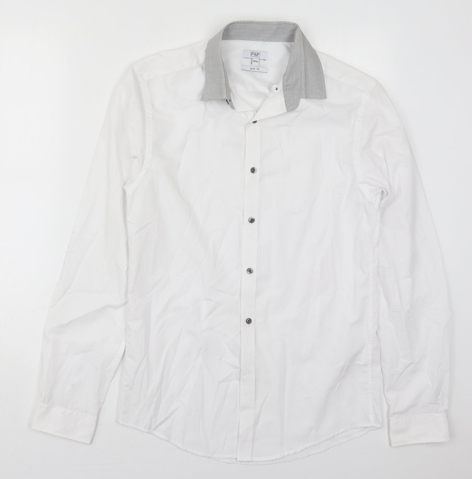 Mens White Polyester Dress Shirt Size 14.5 Collared Button