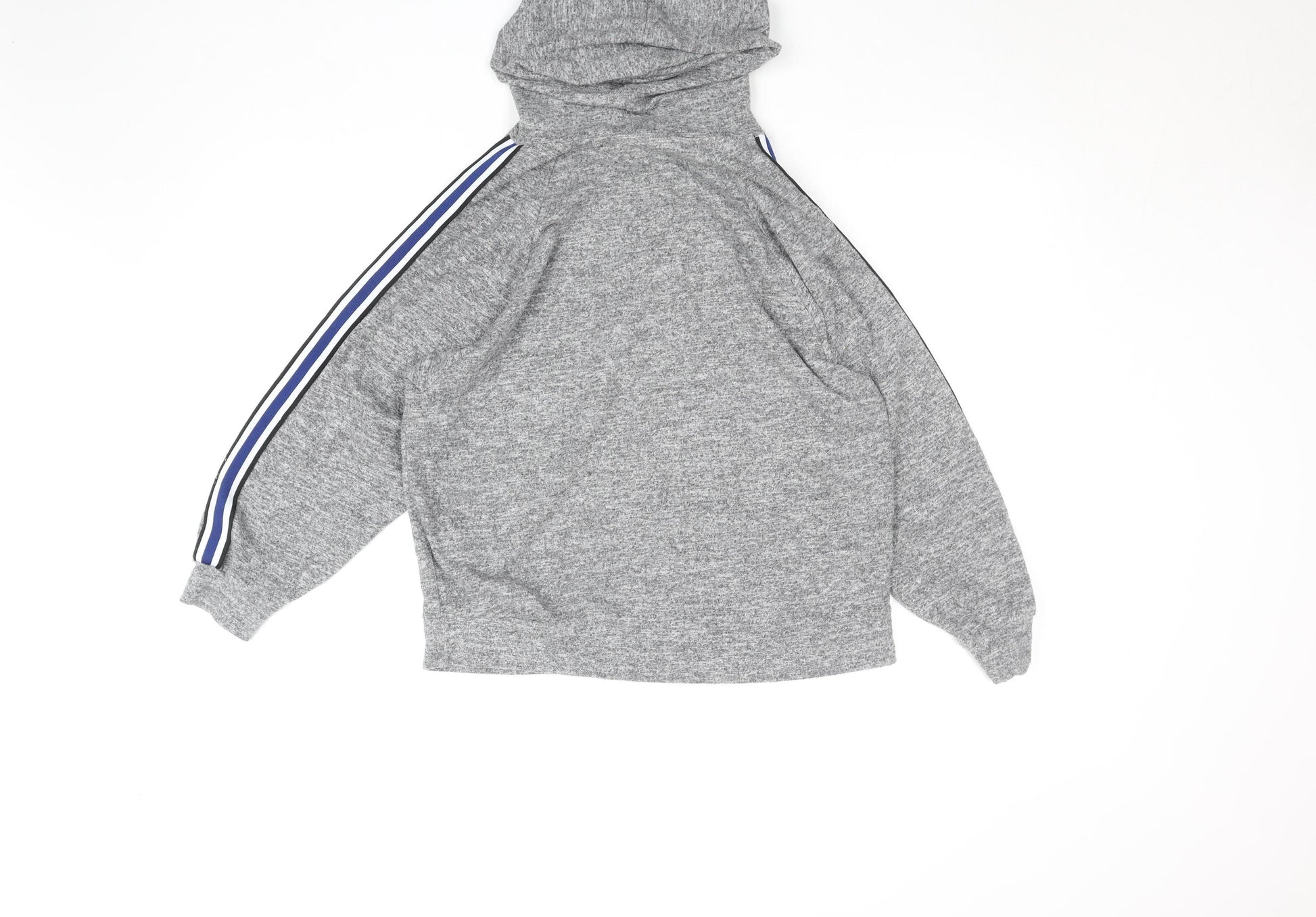 Women Grey Hooded Pullover Sweatshirt UK 12 Drawstring Casual