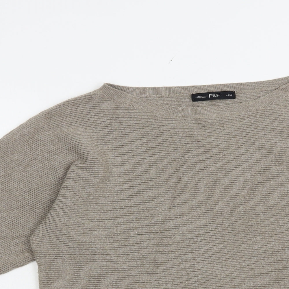Womens Beige Boat Neck Viscose Pullover Jumper Size 12