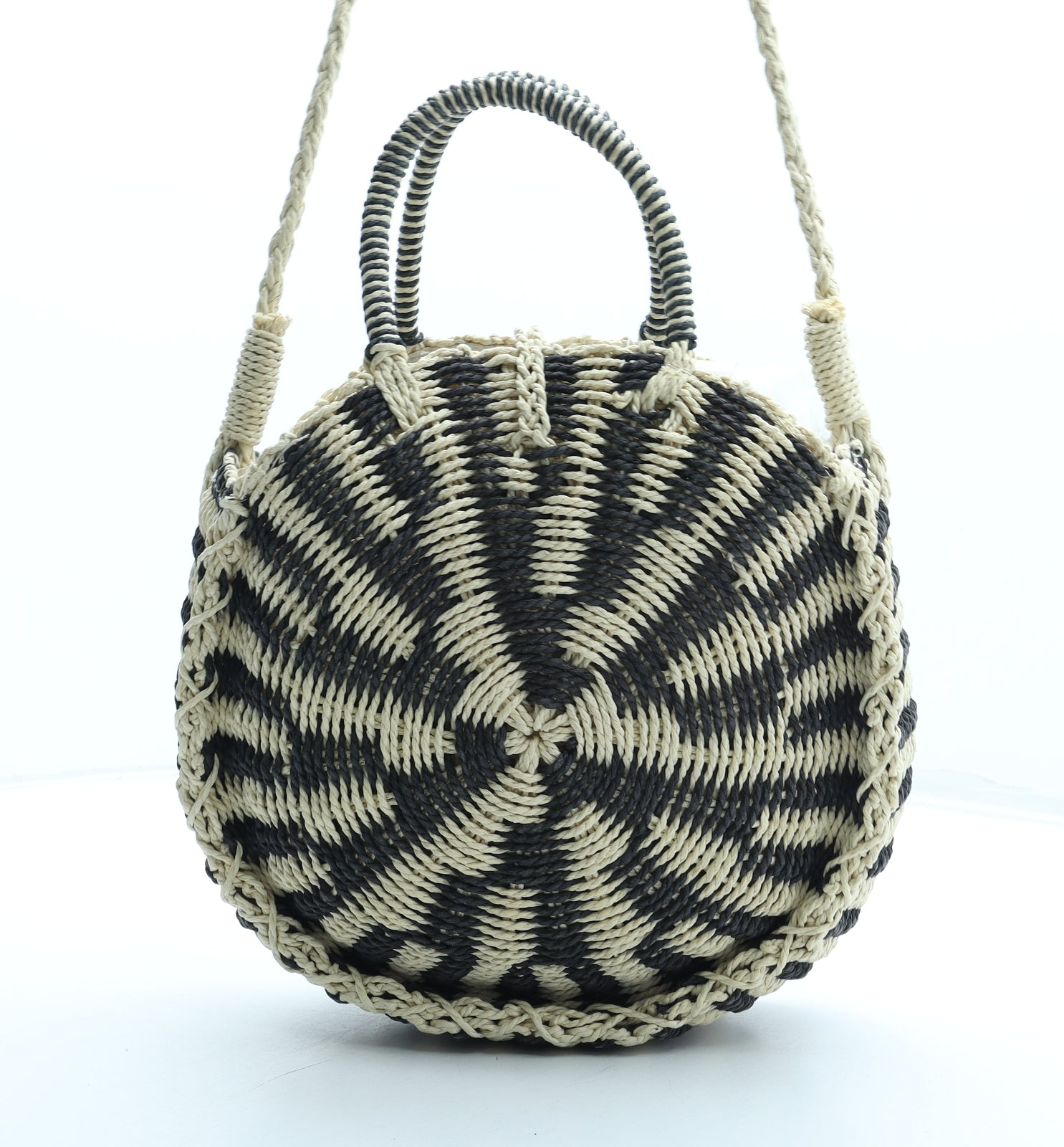 Womens Beige Striped Straw Shoulder Bag Size Medium