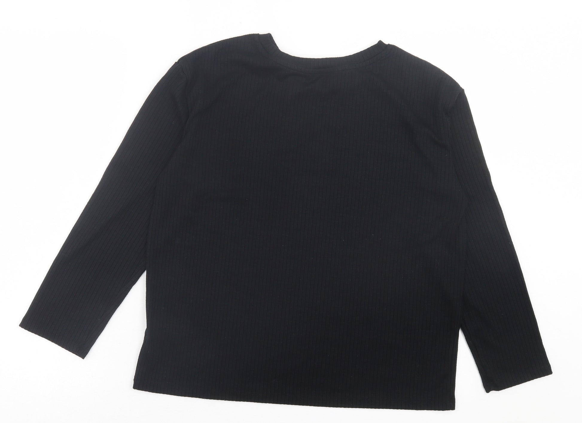 Womens Black Polyester Basic T-Shirt Size 12 Crew Neck - Ribbed Fabric