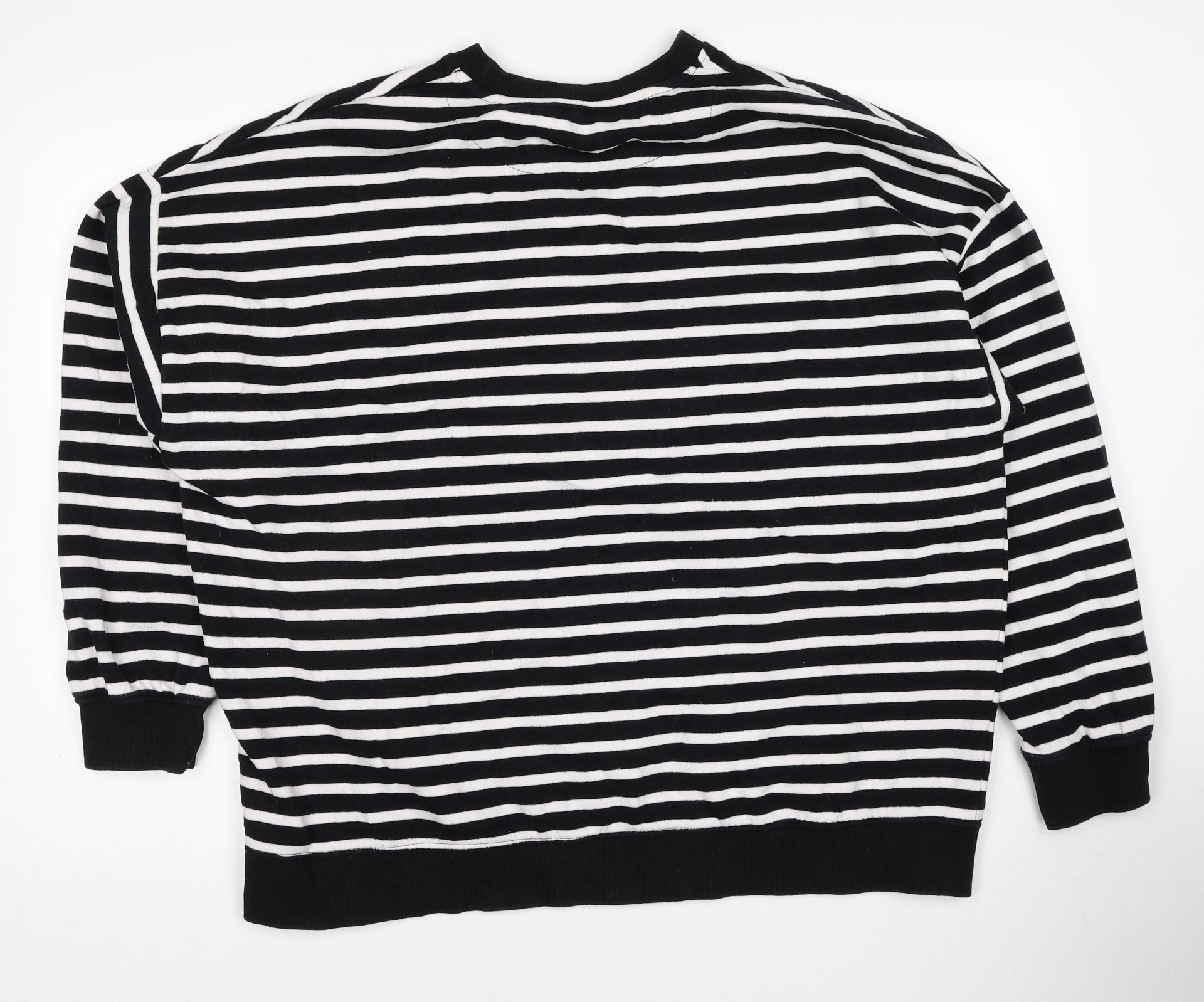 Womens Black Striped Cotton Pullover Sweatshirt Size 18 Pullover - Heart Detail