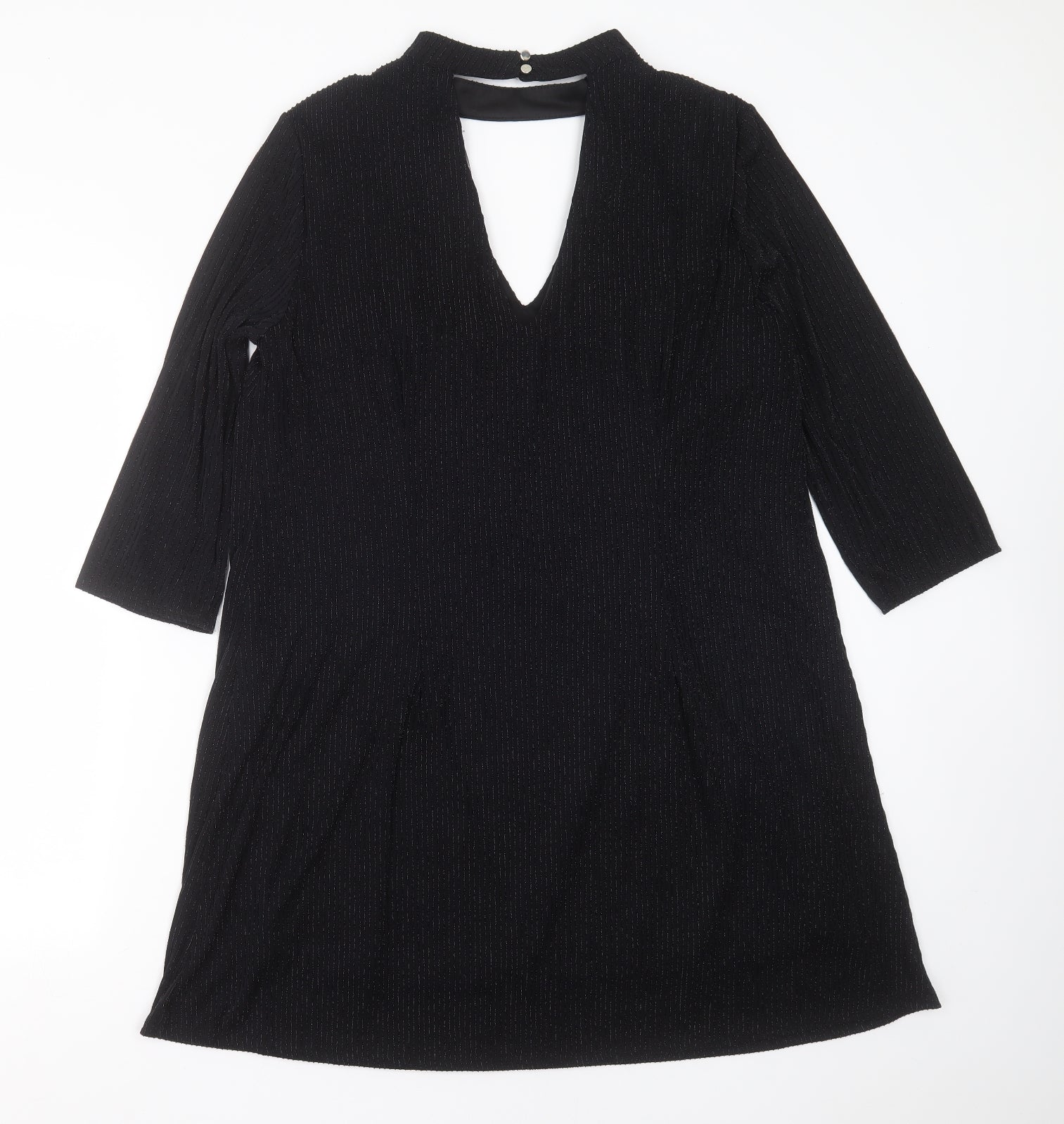 Womens Black Striped Polyester Trapeze & Swing Size 18 Round Neck