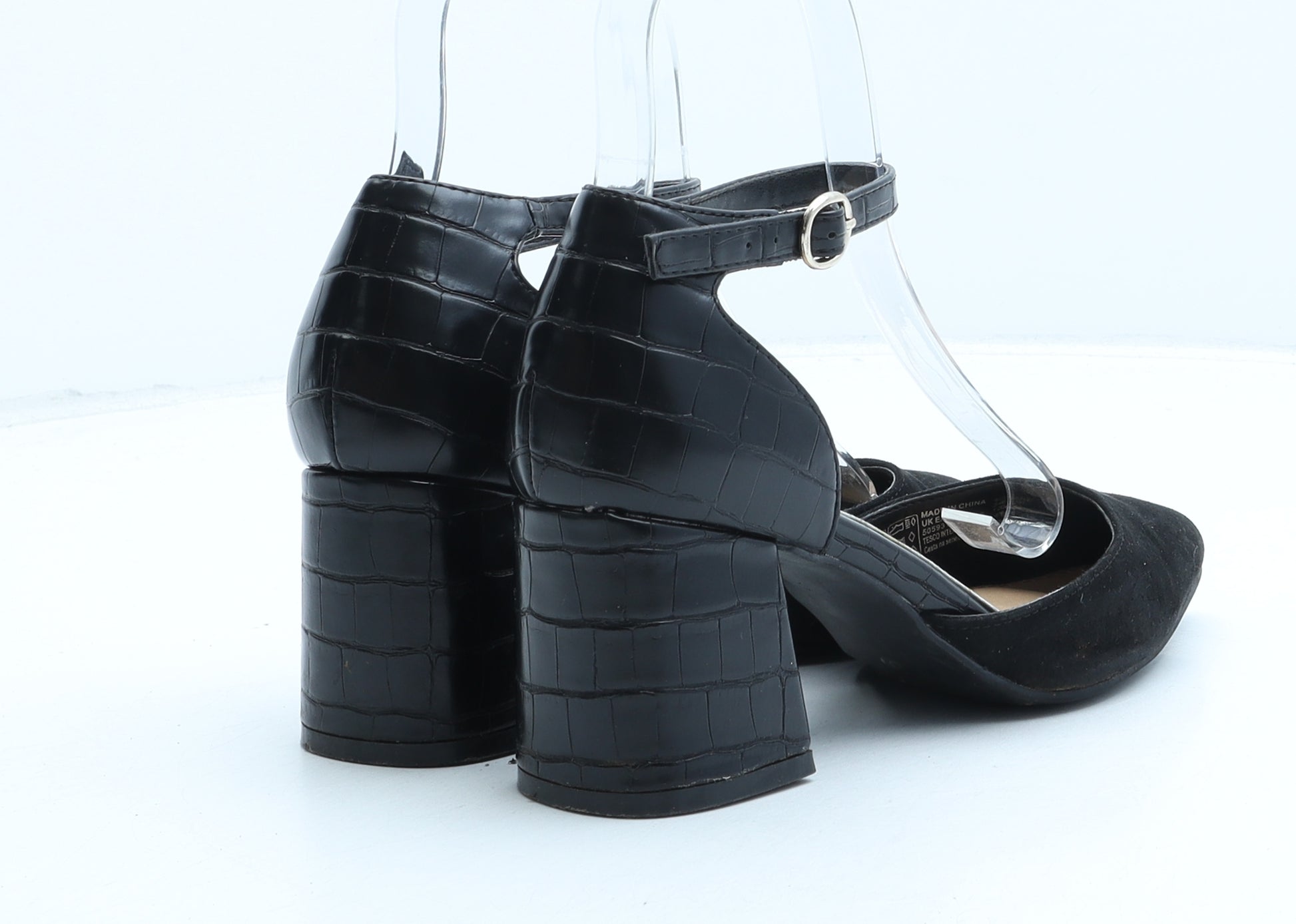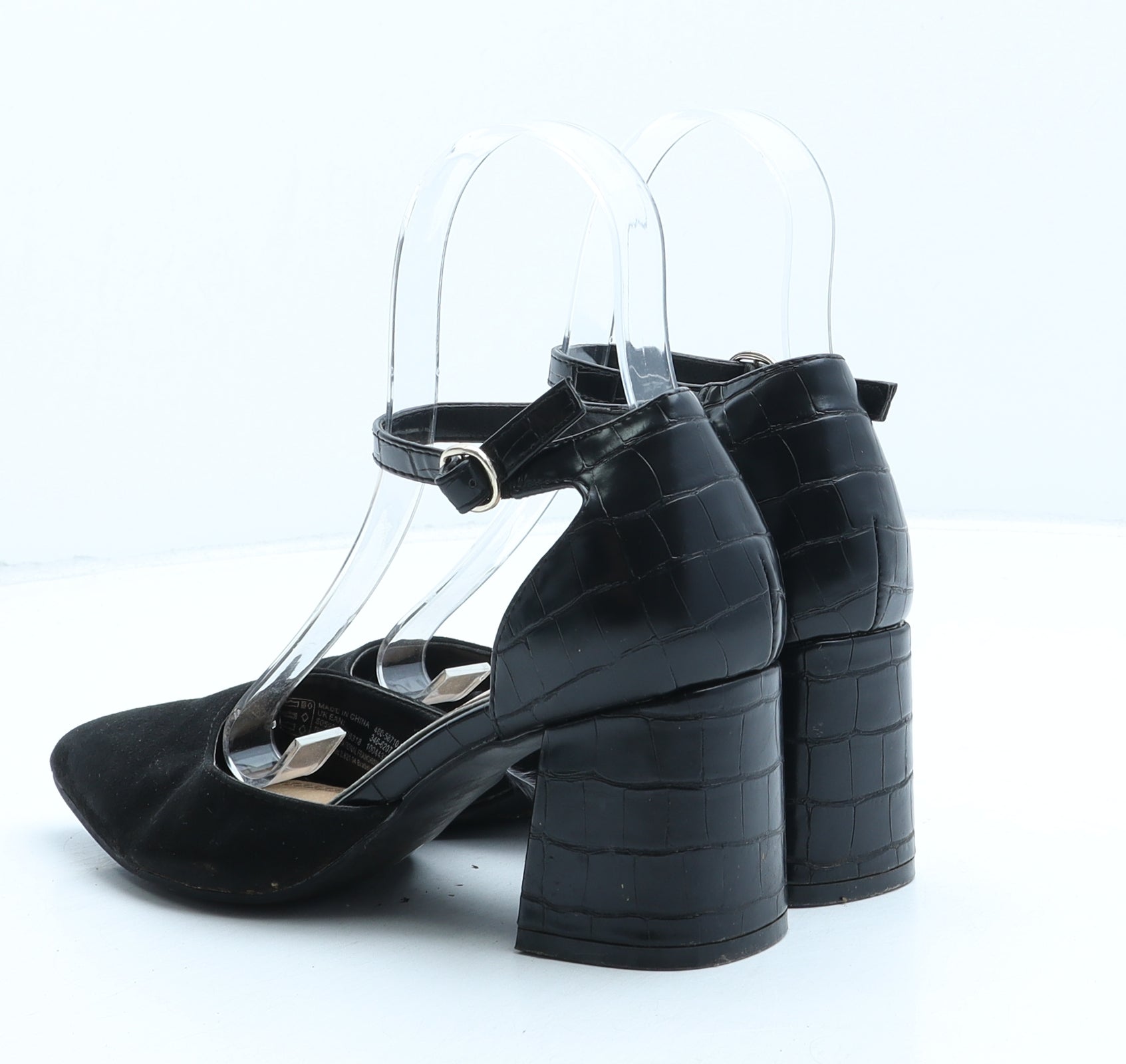 Womens Black Suede Strappy Heel UK 3 - Croc Texture