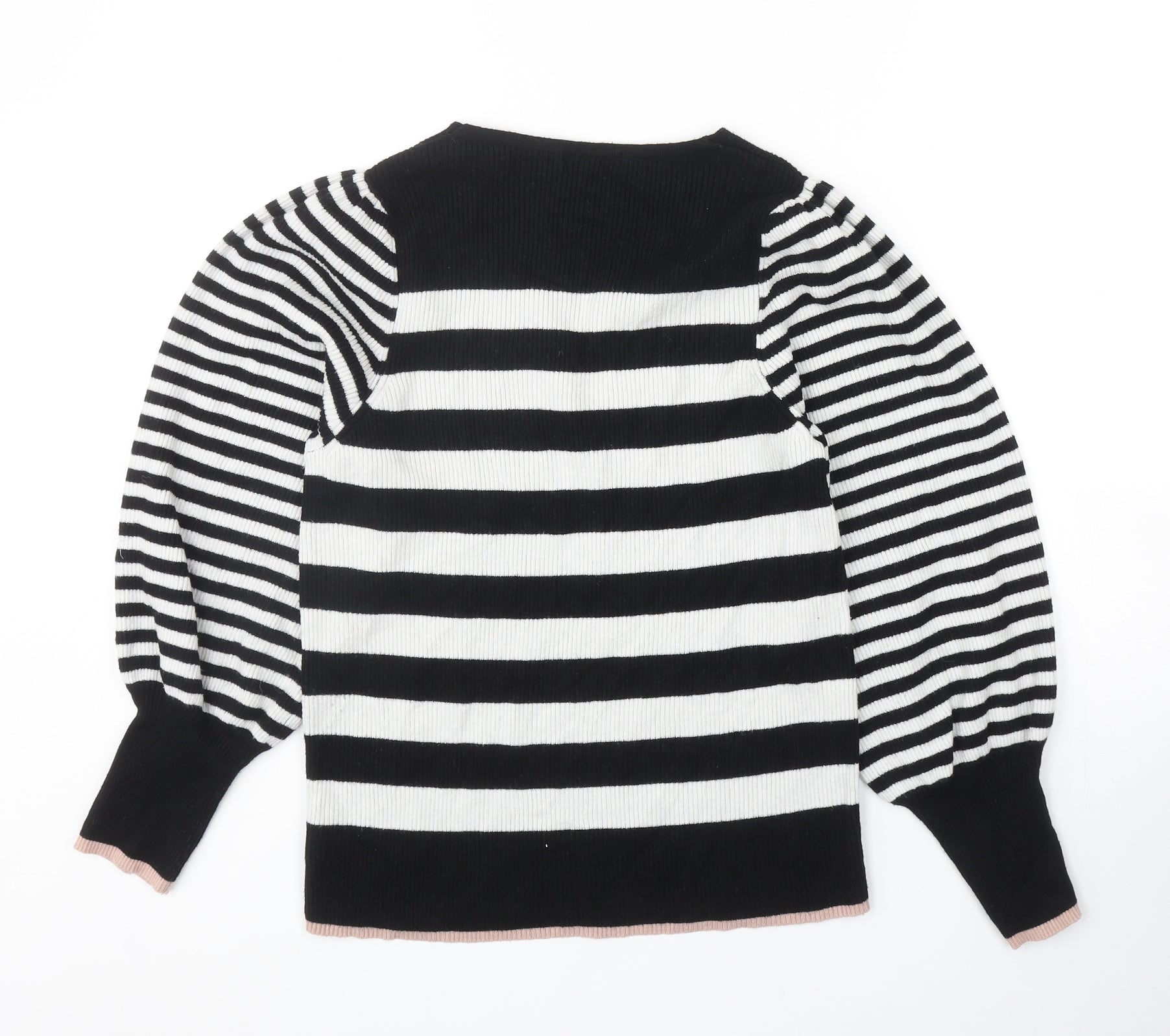 Womens Black V-Neck Striped Viscose Pullover Jumper Size 18