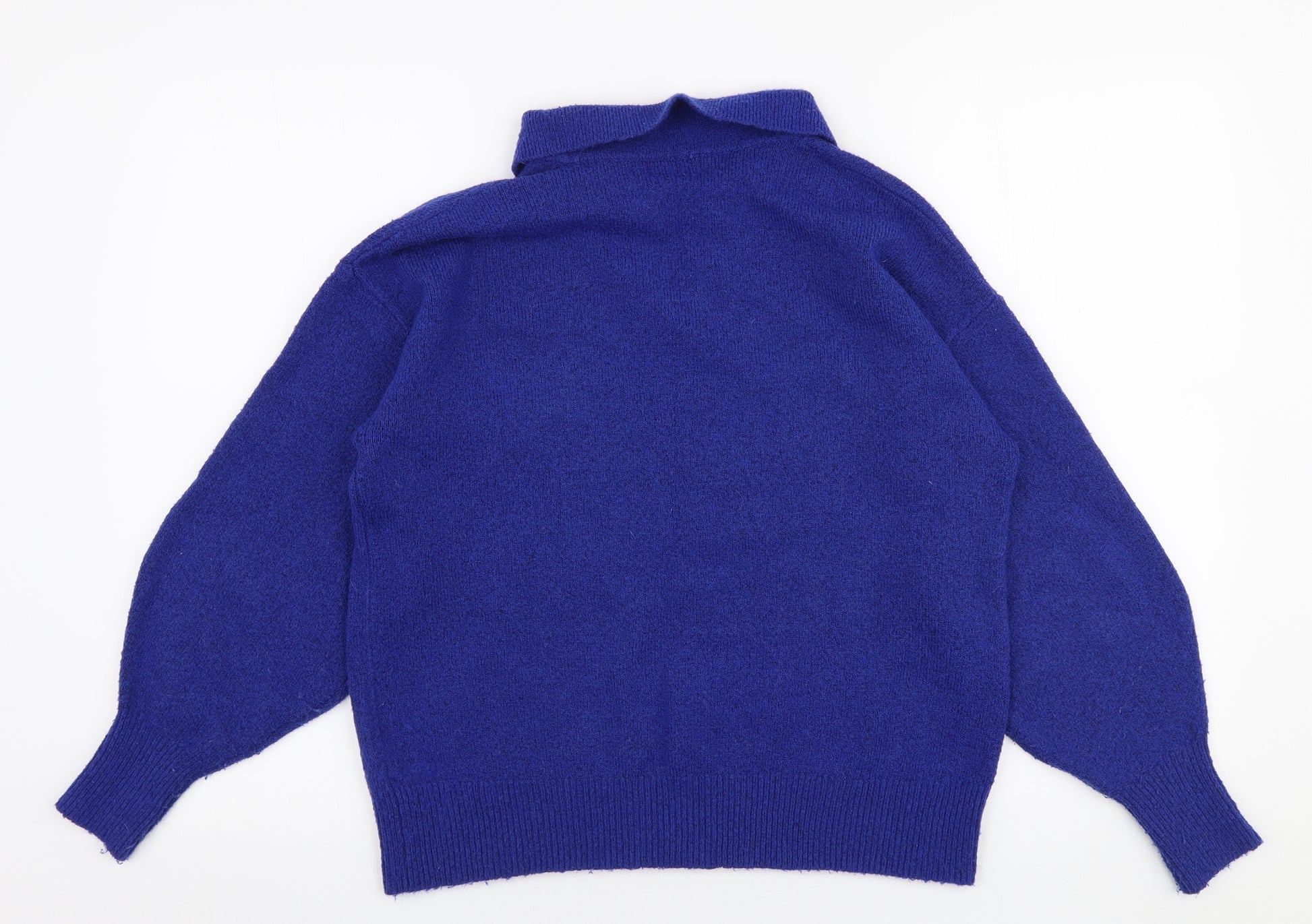 Womens Blue Collared Polyester Pullover Jumper Size 8